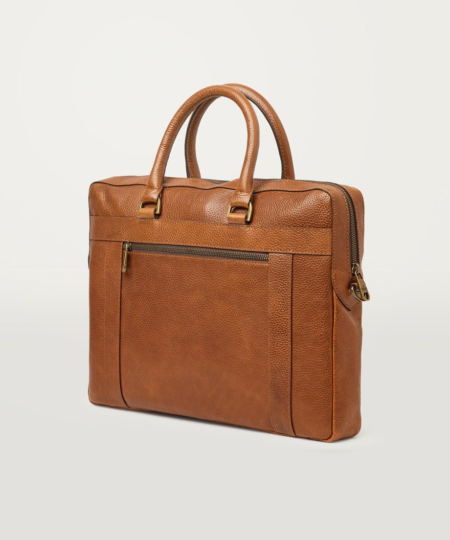 Laptop bag in leather that fits a 15” computer. The bag closes with a metal zipper and has an adjustable and removable shoulder strap in textile. Logo in metal100% Cow leatherSize of the bag: width 38 cm, height, 29 cm, depth 7 cm