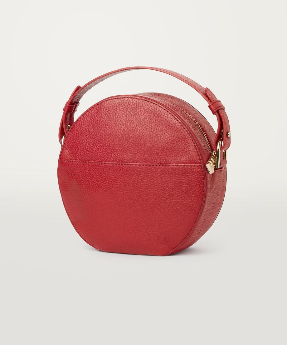 Round crossbody bag in leather.that has a pocket placed on the frontside of the bag. Closes with metal zipper. The bag has an adjustable and removable shoulder strap in leather. logo in metal100% Cow leatherSize of the bag: width 20 cm, height 19 cm, depth 7 cm