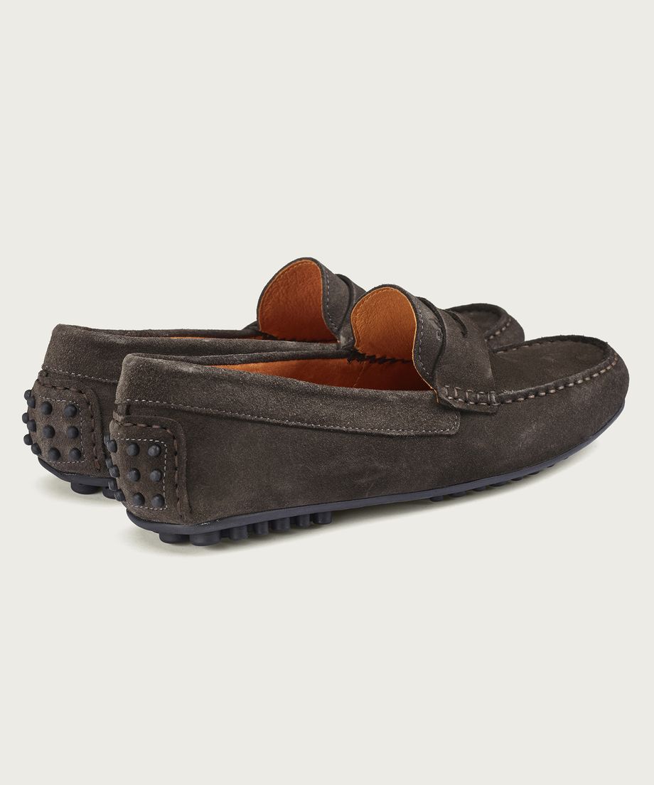Classic car shoe in suede.Debossed lily at top side of the tounge100% Suede