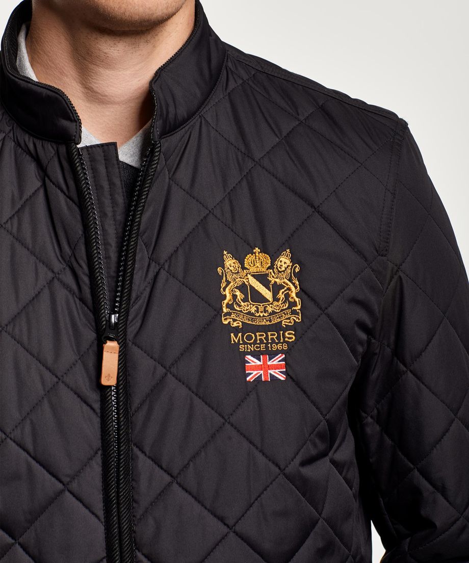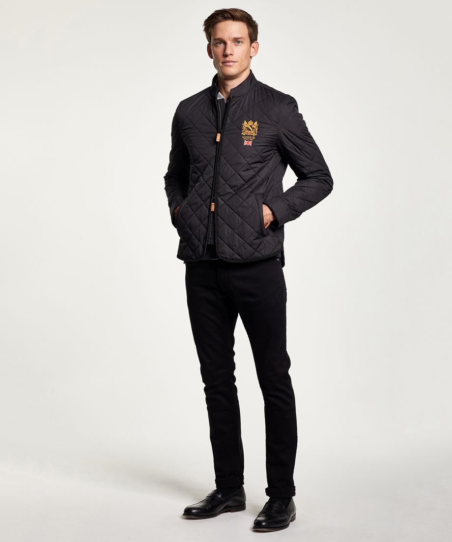 Closes with a zipper2 front pockets 1 inside pocketquiltedStand-up collar with corduroy insideLined with corduroyCuff at 2 buttonsDetails such as embroidery and patch100% PolyesterDry cleanThe model is 184 cm and wears size M.