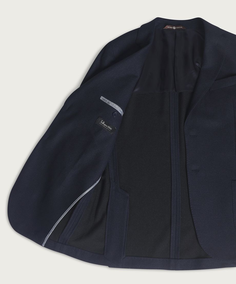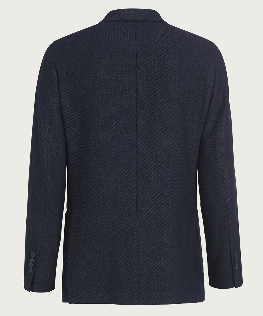 Single breasted blazer made of a fabric with structure. The blazer has two patch pockets with curved opening and one jetted chest pocket. Two pockets are placed inside the blazer. UnlinedSide vents at back50% Wool, 37% Viscose, 13% PolyamideDry cleaningThe model is 190 cm and wears size 48