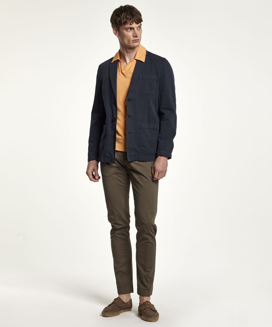 Single breasted spring and summer blazer made of a broken cotton and linen twill from Textil Santanderina. The blazer has two patched pockets and one patched chest pocket. On the inside of the blazer one pocket is placed. Normal fitUnlinedVent at backGarment dyed for a unique and washed look80% Cotton, 20% Linen. Machine wash 30 degrees