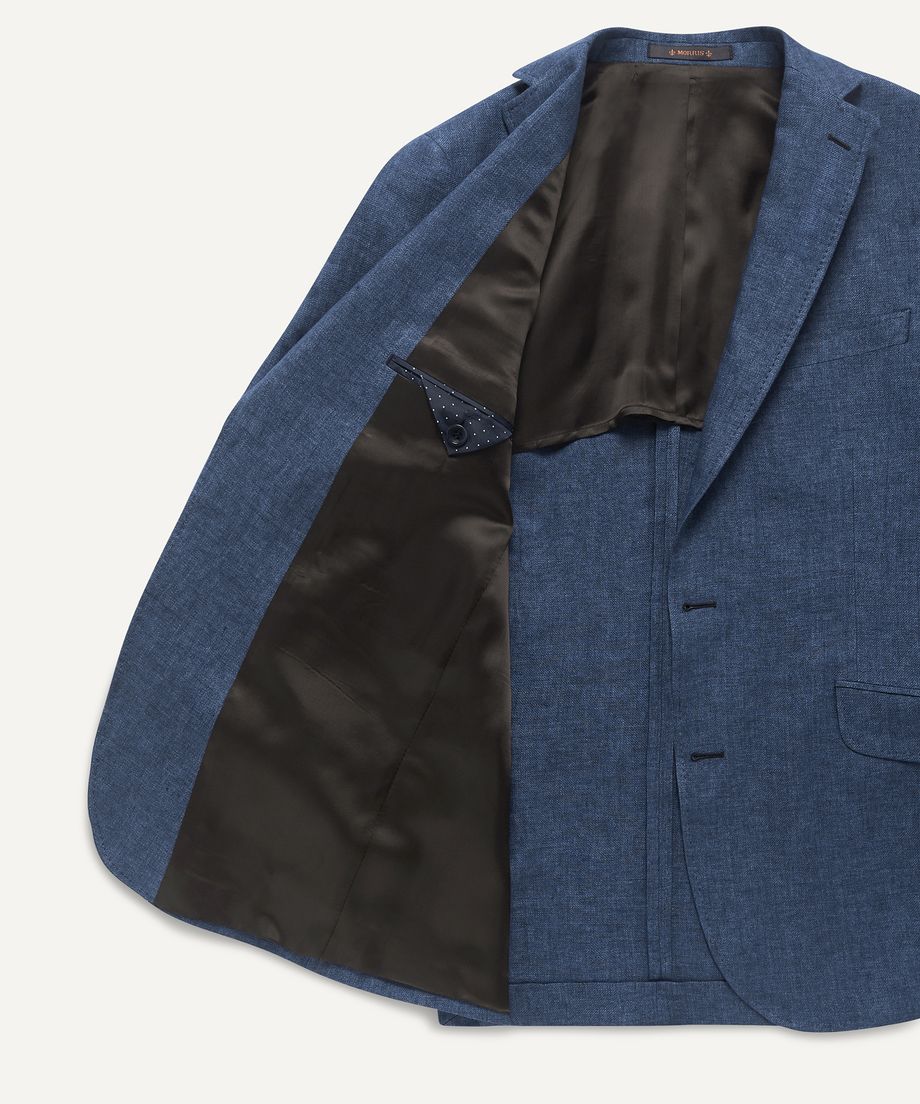 Single breasted linen blazer made of fabric from Italy. The blazer has two pockets with flaps, one ticket pocket with flap and one jetted chest pocket. Normal fitHalf linedSide vents at back. Lily embroidery in orange, left front side under collarFour jetted pockets are placed inside the blazerShell fabric: 100% LinenLining: 100% ViscoseDry cleanYou find the matching trouser to this blazer here: Azour Rodney Linen TrouserThe model is 189 cm and wears size 50.