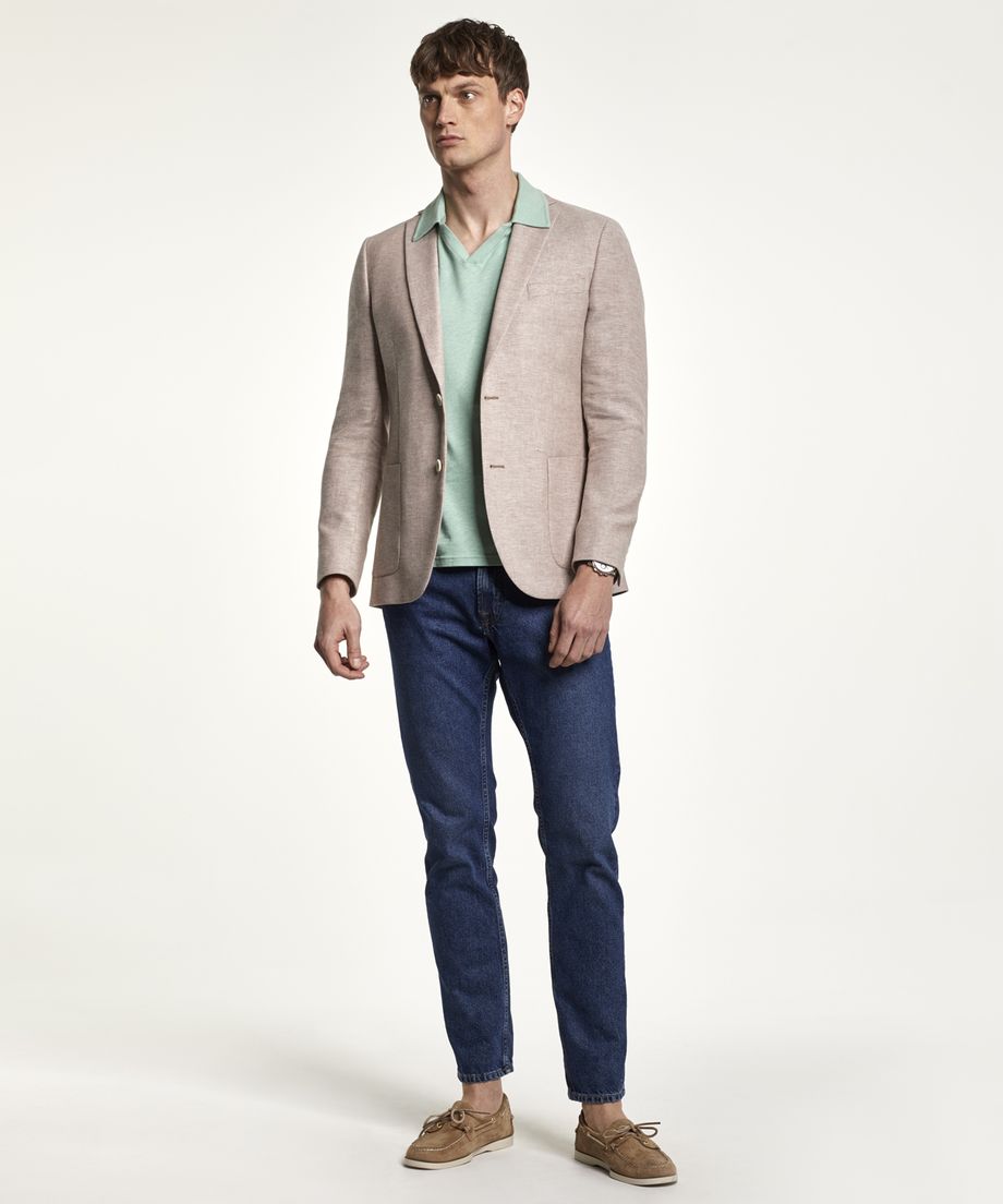 Single breasted blazer with a shirt shoulder, made of a cotton and linen fabric woven of two colours from Profilo SRL. The blazer has two patched pockets and one jetted chest pocket. Normal fitHalf linedSide vents at back. Lily embroidery in orange, left front side under collarFour jetted pockets are placed inside the blazerShell fabric: 55% Cotton, 44% Linen, 1% ElastaneLining: 100% ViscoseDry cleanThe model is 184 cm and wears size 50