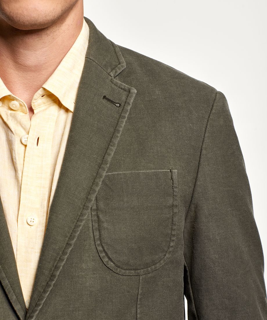 Cotton blazer with a washed look, made of a fabric signed by the Italian weaver Tessitura Di Albizzate. The blazer is single breasted and has two patched pocket and a patched chest pocket. Normal fitUnlinedSide vents at back. Lily embroidery in orange, left front side under collarFour jetted pockets are placed inside the blazer97% Cotton, 3% ElastaneDry cleanYou find the matching trouser to this blazer here: Rodney Washed Cotton Trouser