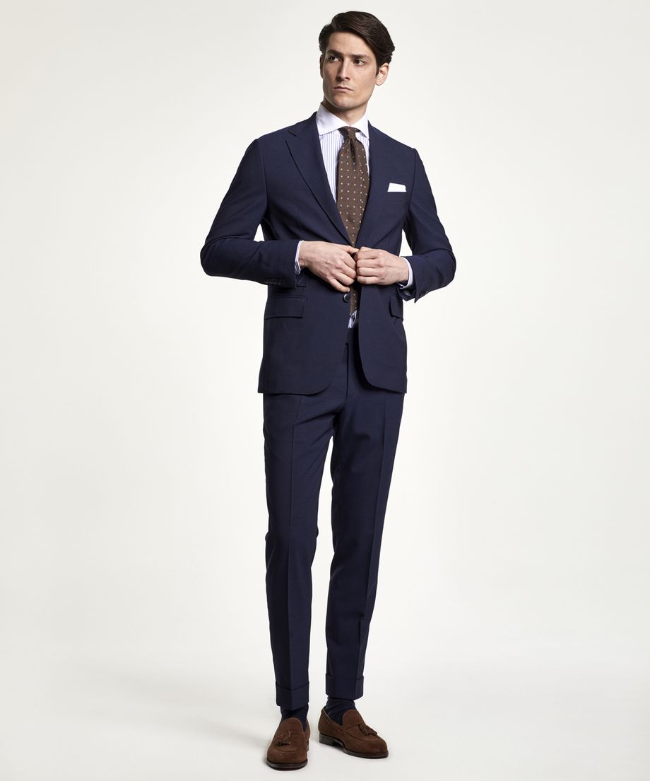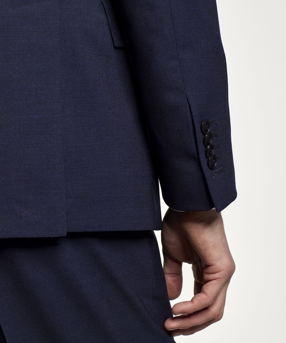Premium single breasted traveller suit jacket made of a wool fabric from the Italian weaver Tollegno, woven of a 3-ply yarn. The 3-ply twisted yarn gives the fabric a natural elasticity and comfort. The fabric also has a high wrinkle resistance. The properties of the fabric make the traveller suit jacket perfect for travelling. Since wool is a temperature regulating material, it can be worn regardless of season. Normal fitUnlined with bound seamsTwo classic pockets with flaps, one ticket pocket with flap and one jetted chest pocketTwo interior pocketsSide vents at back99% Wool, 1% ElastaneDry cleanYou find the suit trousers to this suit blazer here: Fred Traveller Suit TrouserThe model is 190 cm and wears size 48.