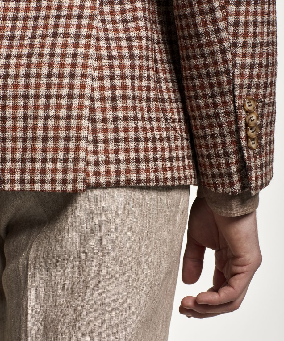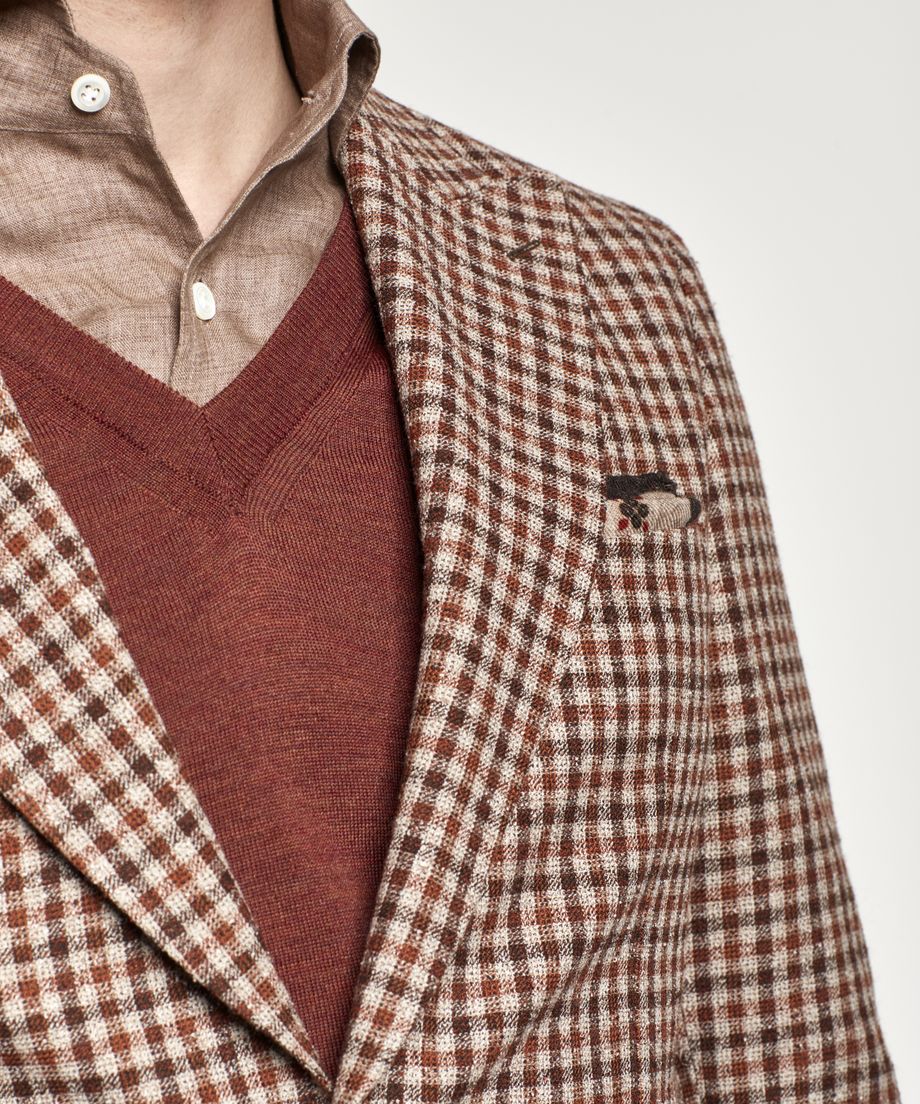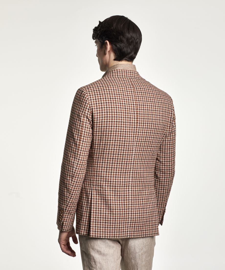 Dogtooth checked Premium blazer made of a fabric with a 70s inspired look, from the Italian weaver Angelico. The blazer is single breasted and has decorative peak lapels. The patched pockets give the blazer a casual look. The blazer has one jetted chest pocket and three interior pockets. Normal fitUnlined with bound seamsSide vents at back45% Viscose, 20% Wool, 20% Cotton, 15% PolyamideDry cleanThe model is 190 cm and wears size 48.