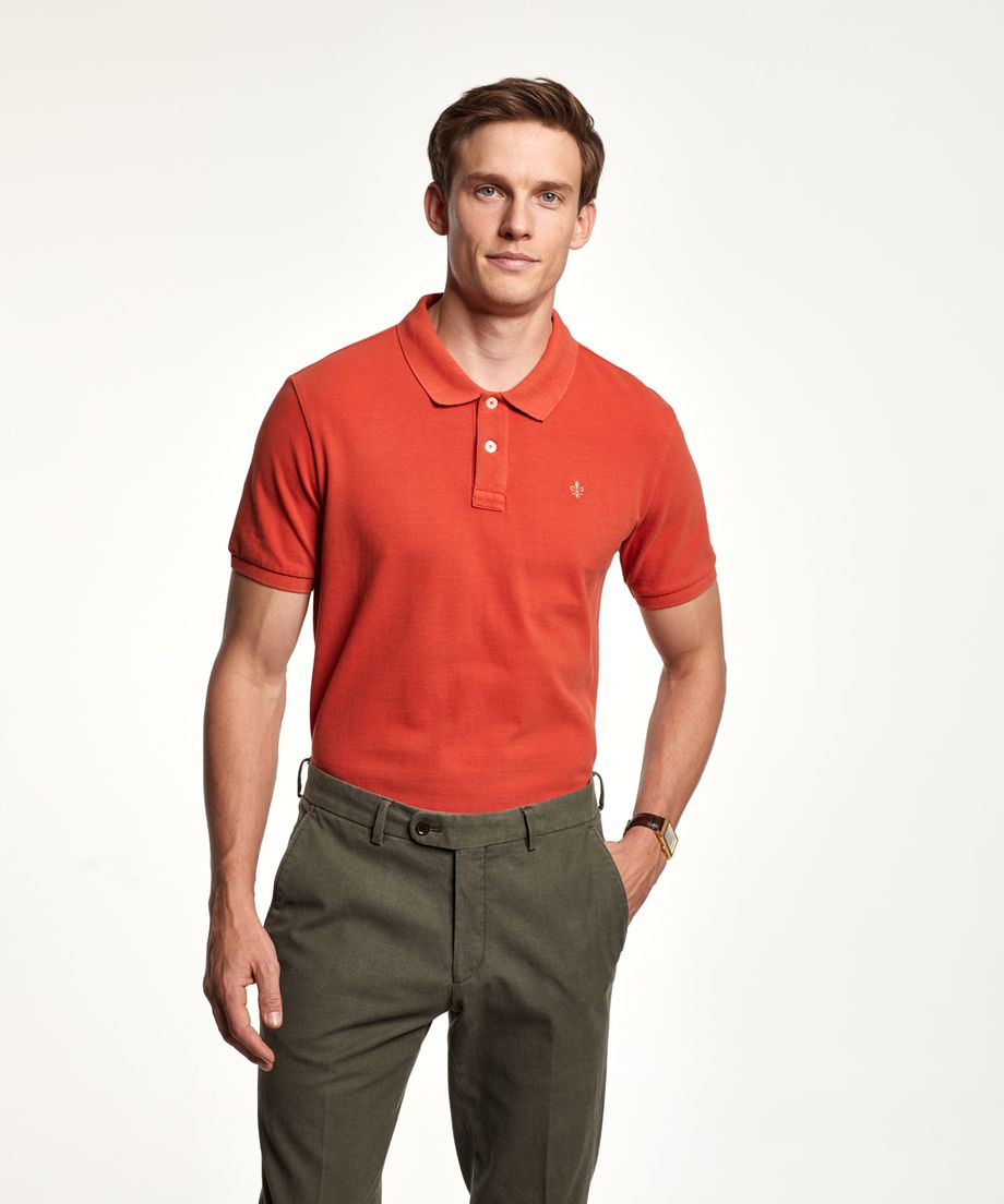 Premium popover shirt made of a pique knitted cotton fabric. The shirt has a placket with four buttons and a single cuff with two buttons. Normal fit100% CottonMachine wash 30 degrees. The model is 190 cm and wears size M.