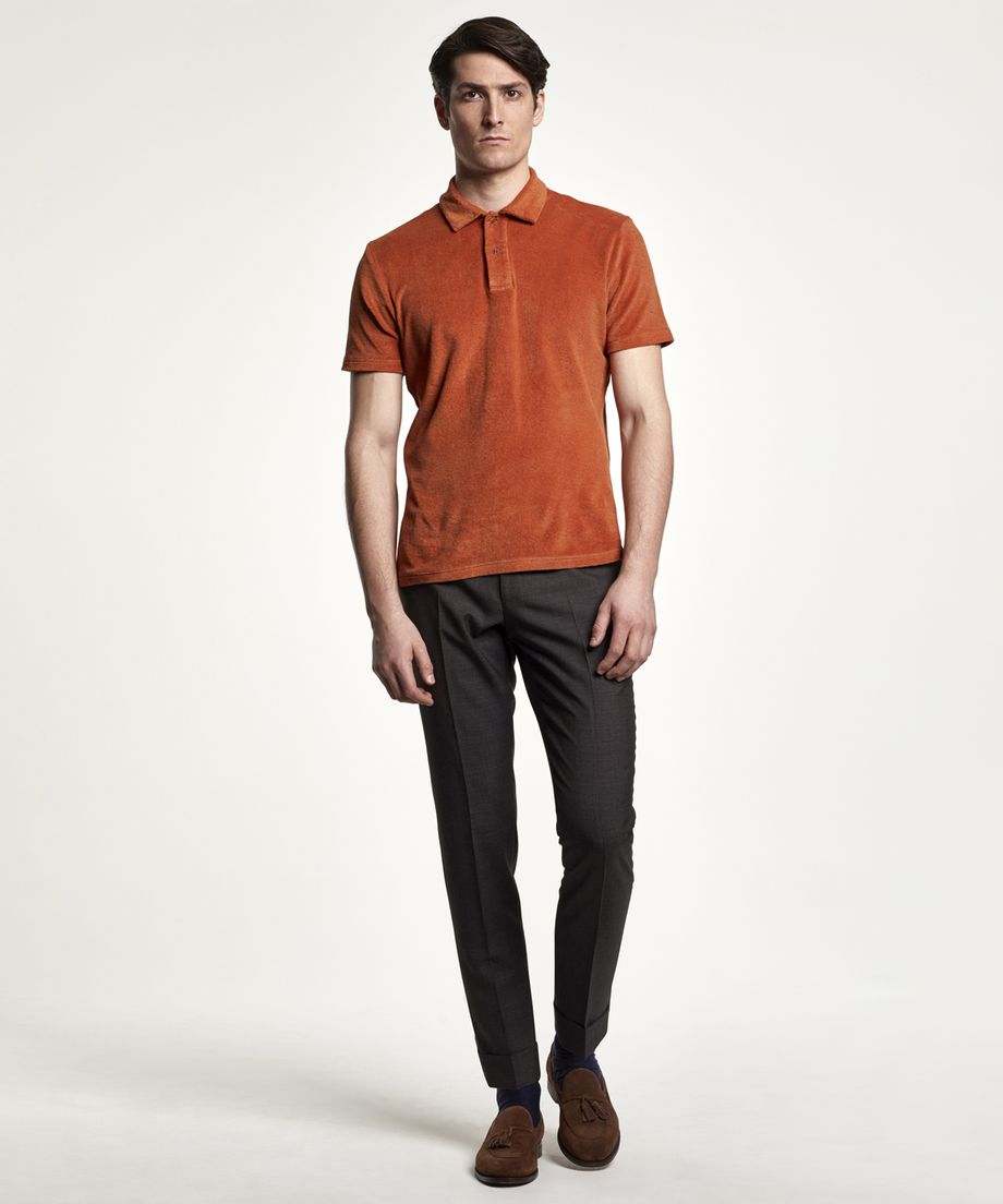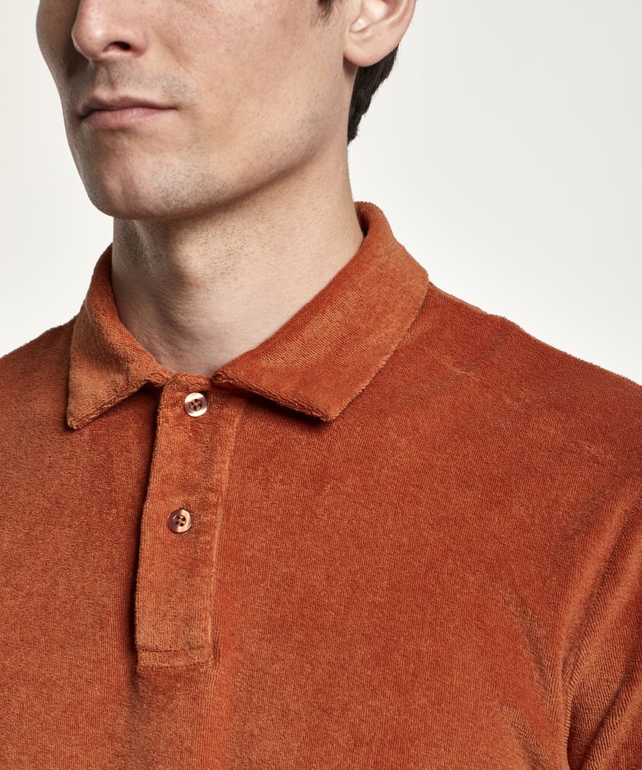 Premium polo shirt made of a cotton terry, suitable for spring and summer days. The polo shirt has short sleeve and a placket with two buttons. Normal fit100% CottonMachine wash 30 degrees. The model is 190 cm and wears size M.