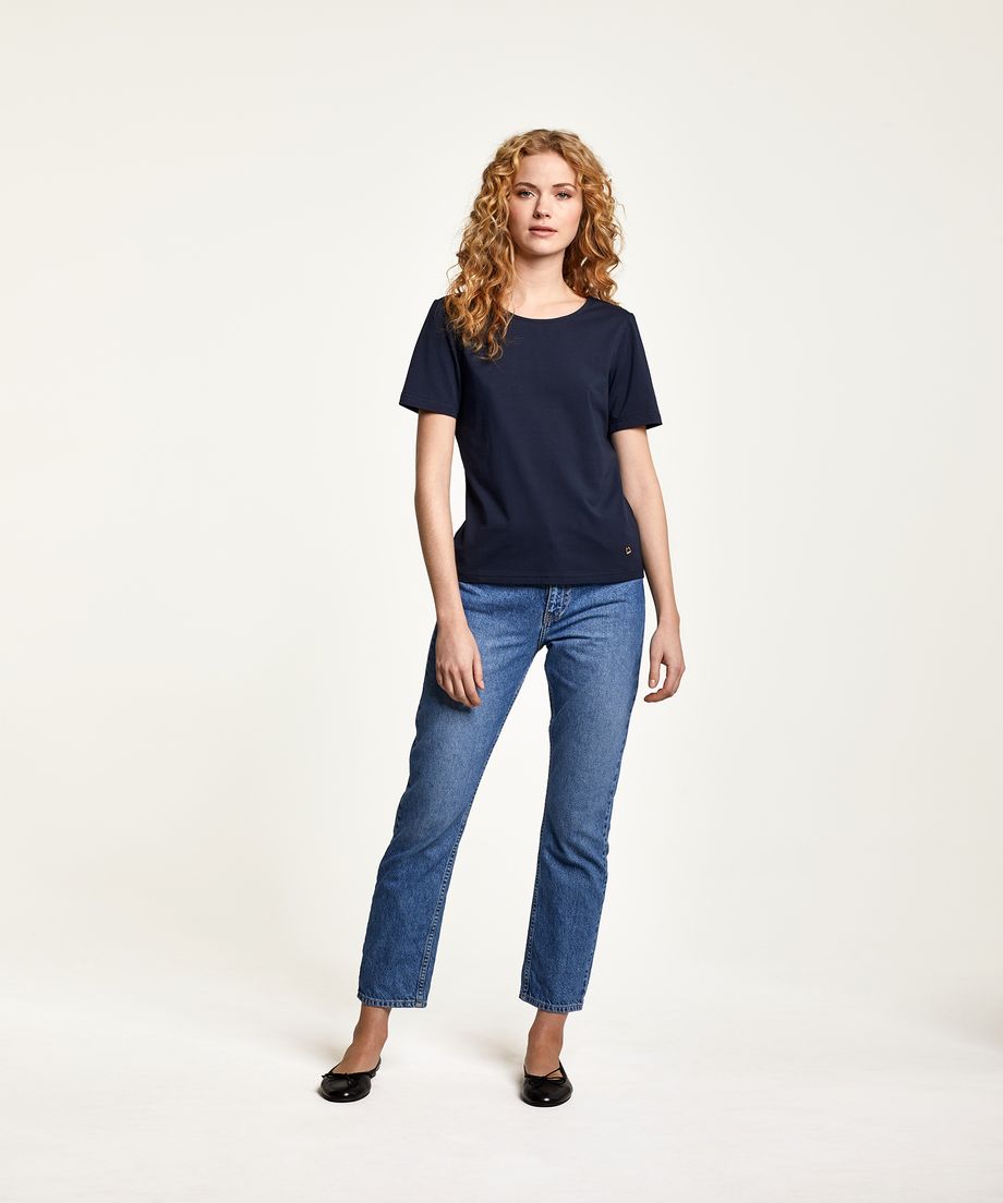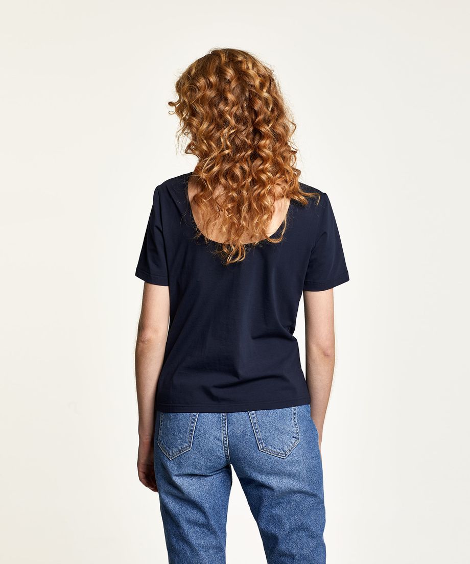 Jersey top with deep back. 95% Cotton, 5% SpandexMachine wash 40 degrees. The model is 176 cm and wears size S.
