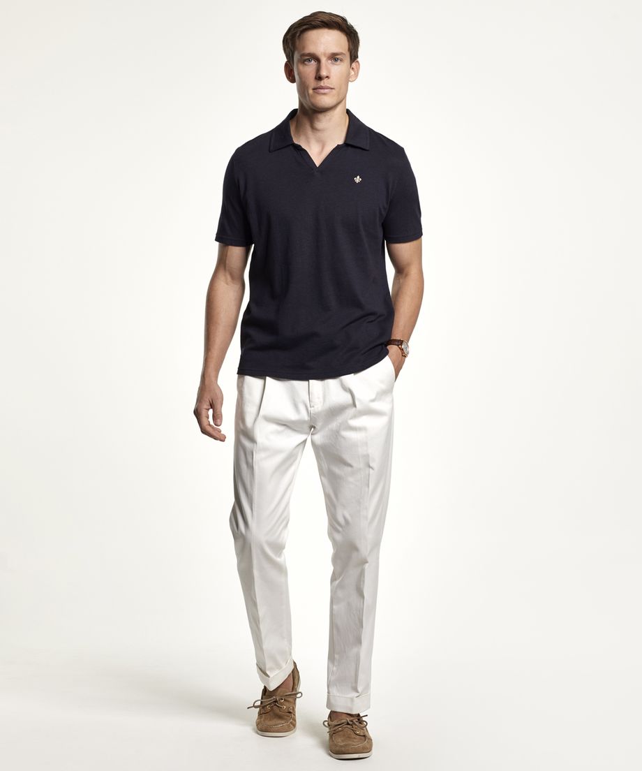 Delon Jersey Shirt is a new style for the season in the assortment. A relaxed and loose jersey shirt in cotton and linen, with an interesting collar and V-opening at front. Signature lily in contrast colour is placed at left chest. Normal fitDecorative woven label placed at bottom55% Cotton, 45% Linen. Machine wash 40 degrees