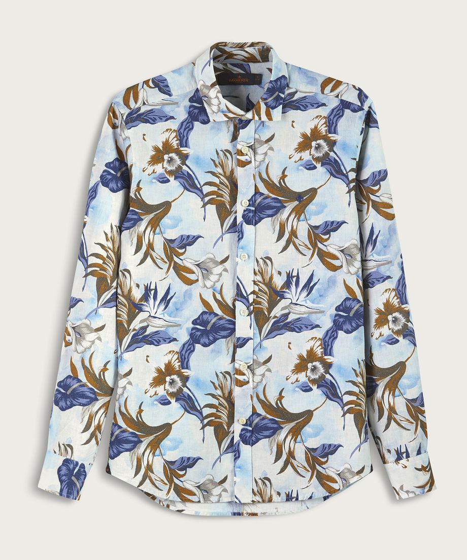 Delon Jersey Shirt is a new style for the season in the assortment. A relaxed and loose jersey shirt in cotton and linen, with an interesting collar and V-opening at front. Signature lily in contrast colour is placed at left chest. Normal fitDecorative woven label placed at bottom55% Cotton, 45% Linen. Machine wash 40 degrees
