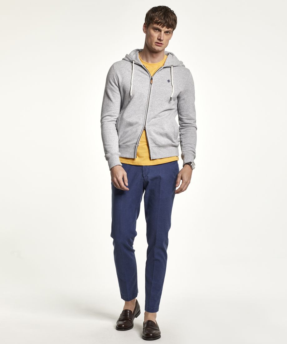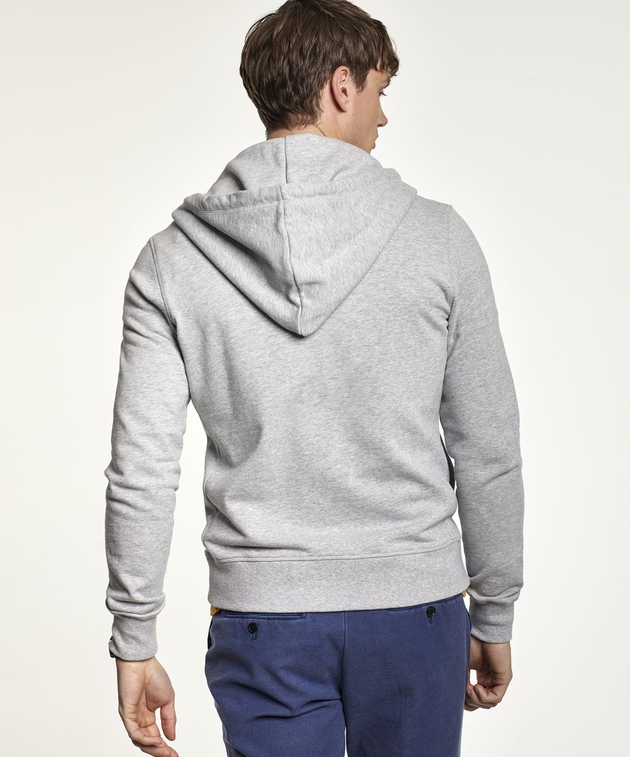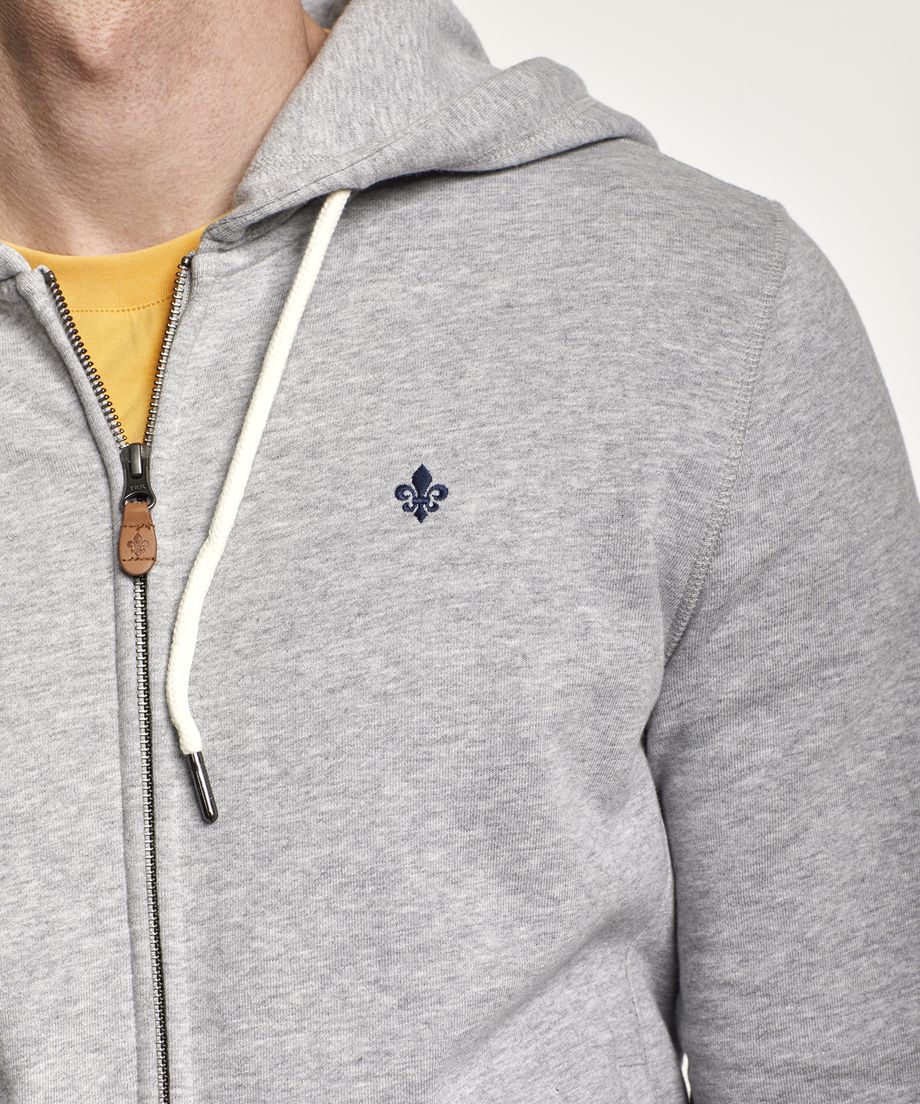 Zip hood with a two-way metal zipper at front, made of a heavy jersey quality with a slightly peached surface. Along the side seams vertical jetted pockets are placed. Rib at cuff and bottom hem.Normal fit. Embroidered lily at left chest100% CottonMachine wash 40 degrees
