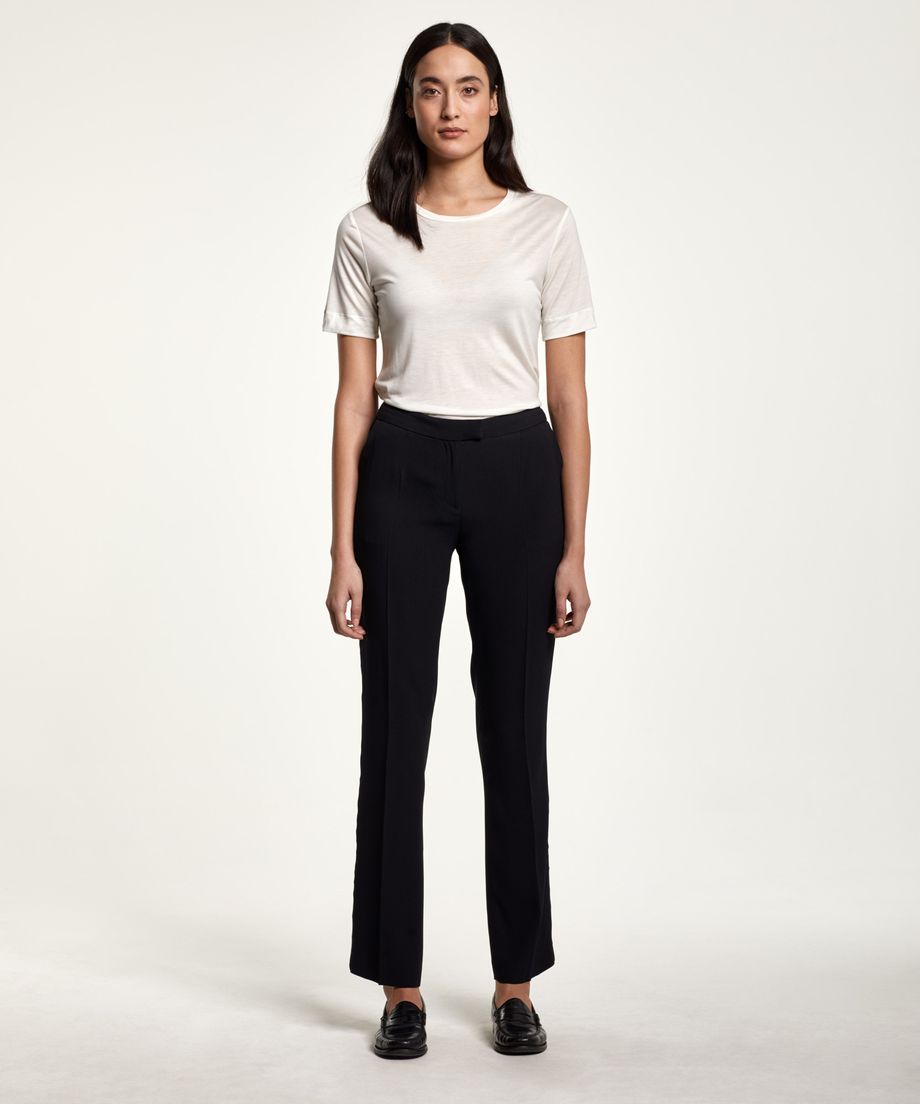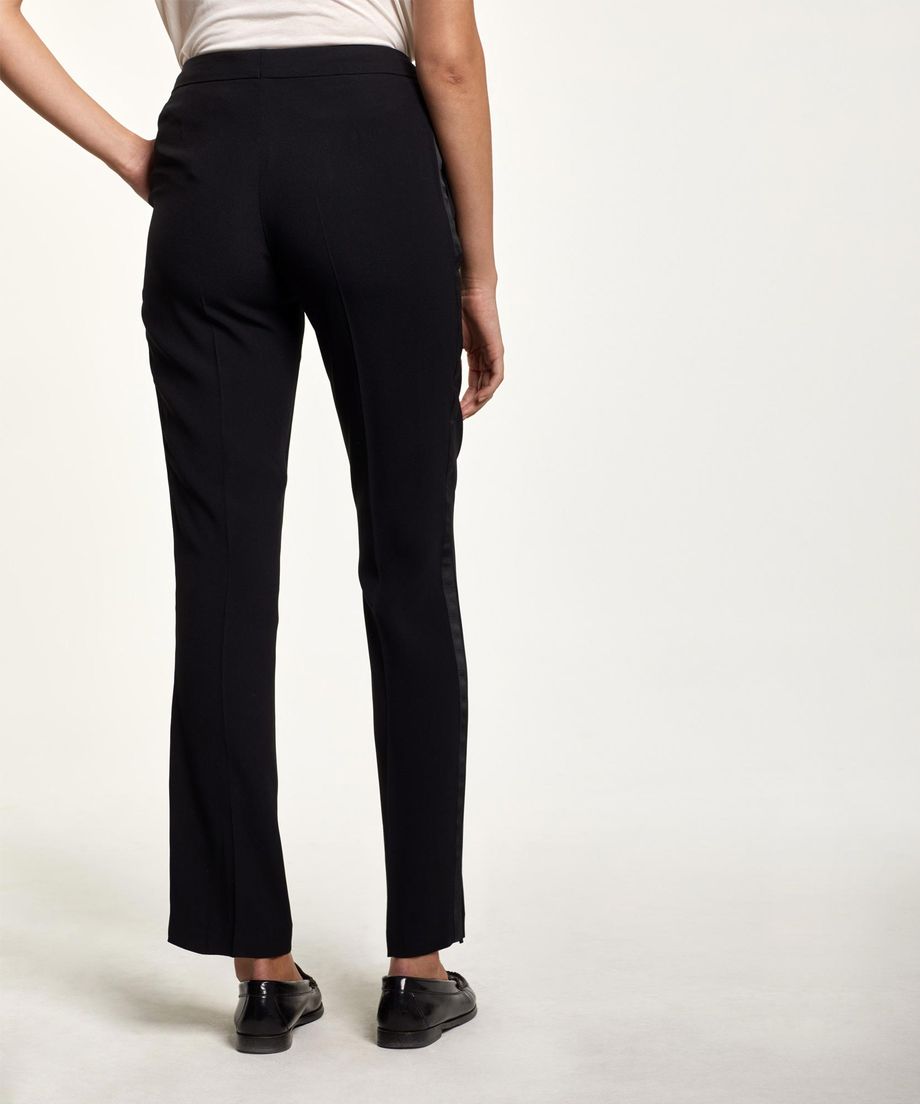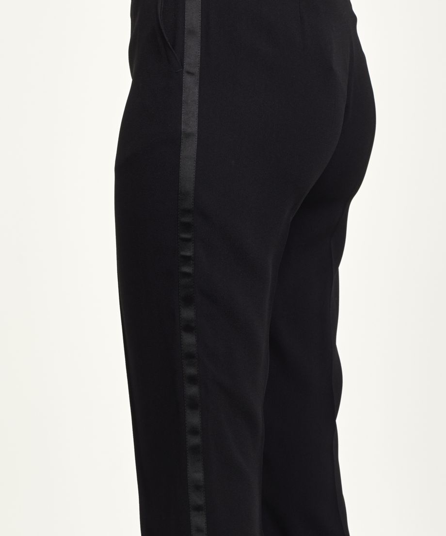 Smoking trouser with side stripes and normal fit. The trouser has two slanted side pockets at front. Closes with hook and eye, and zipper. Press folds at front and back. 78% Acetate, 22% ViscoseDry cleanYou find the matching blazer here: Lulu Smoking BlazerThe model is 180 cm and wears size 36.
