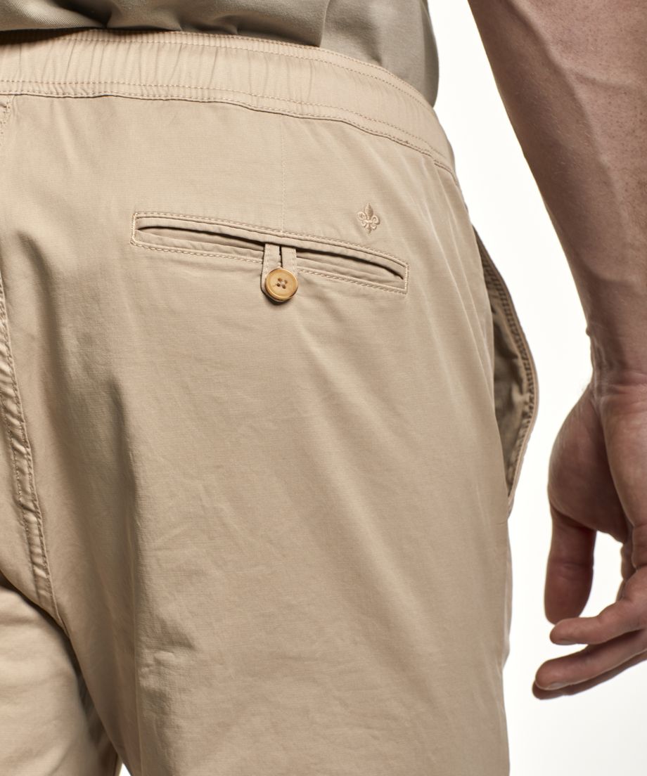 Winward Pants is a new style in the assortment, called jumper pants. This style is a pull-on pants with an elasticated waist, adjusted with a drawcord. The fit is relaxed with a medium rise, straight leg and a regular leg opening. The pants are made of a lightweight cotton twill with a slight stretch from Textil Santanderina. Normal fit. Embroidered lily above right back pocketGarment dyed for a unique look and washed look95% Cotton, 5% LycraMachine wash 30 degrees