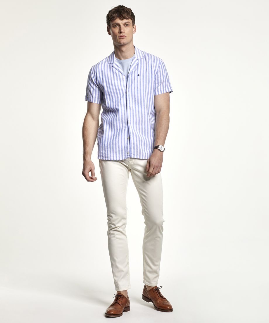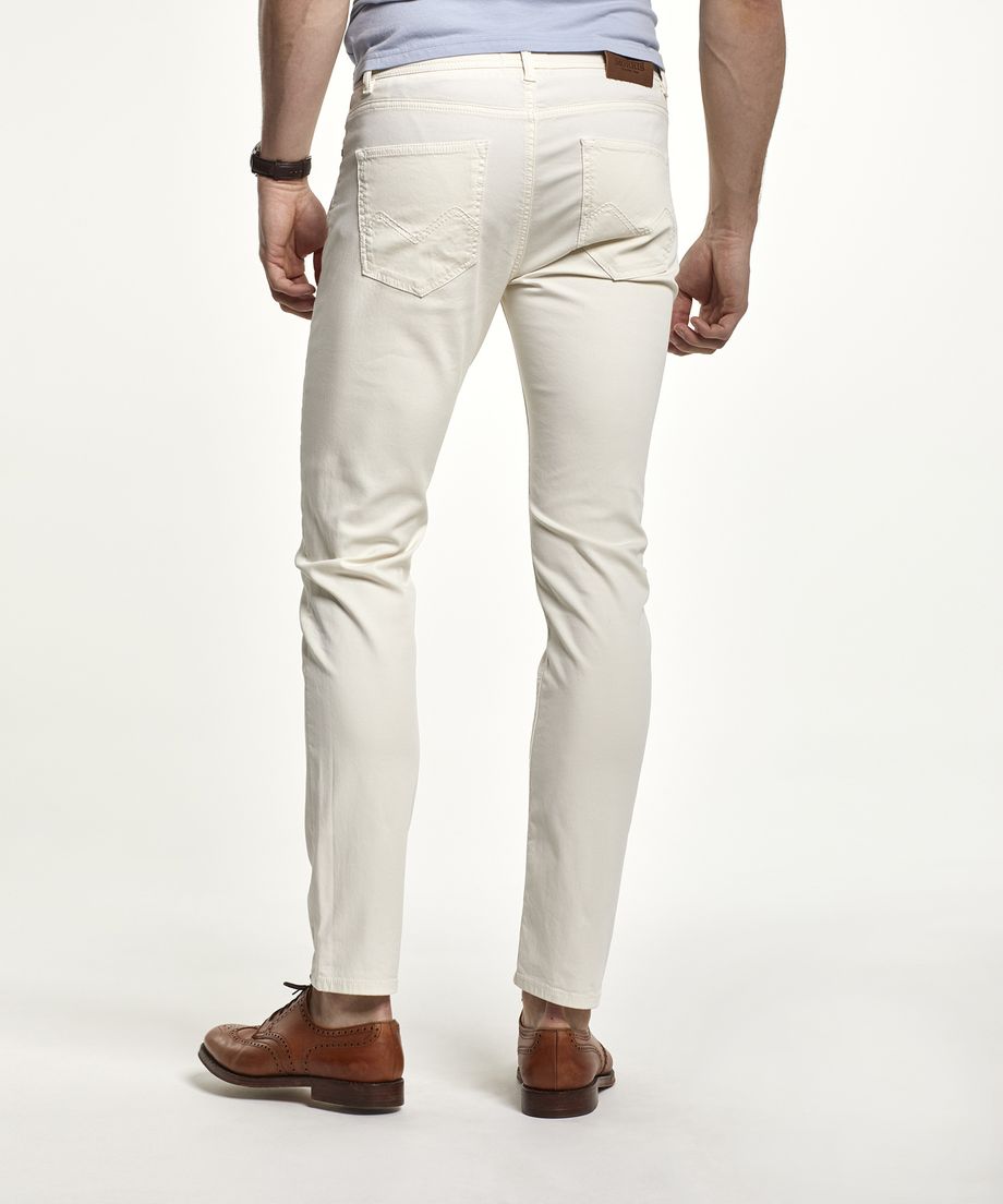Classic 5-pockets made of a structure woven cotton fabric with slight stretch. The 5-pkts are garment dyed, which gives each trouser a unique and washed look. Closes with a metal button and button fly. The trouser has two front pockets, one coin pocket and two back pockets. The back pockets are decorated with signature embroidery. Normal fitPrinted pocket liningEmbroidered lily at coin pocket98% Cotton, 2% ElastaneMachine wash 40 degrees