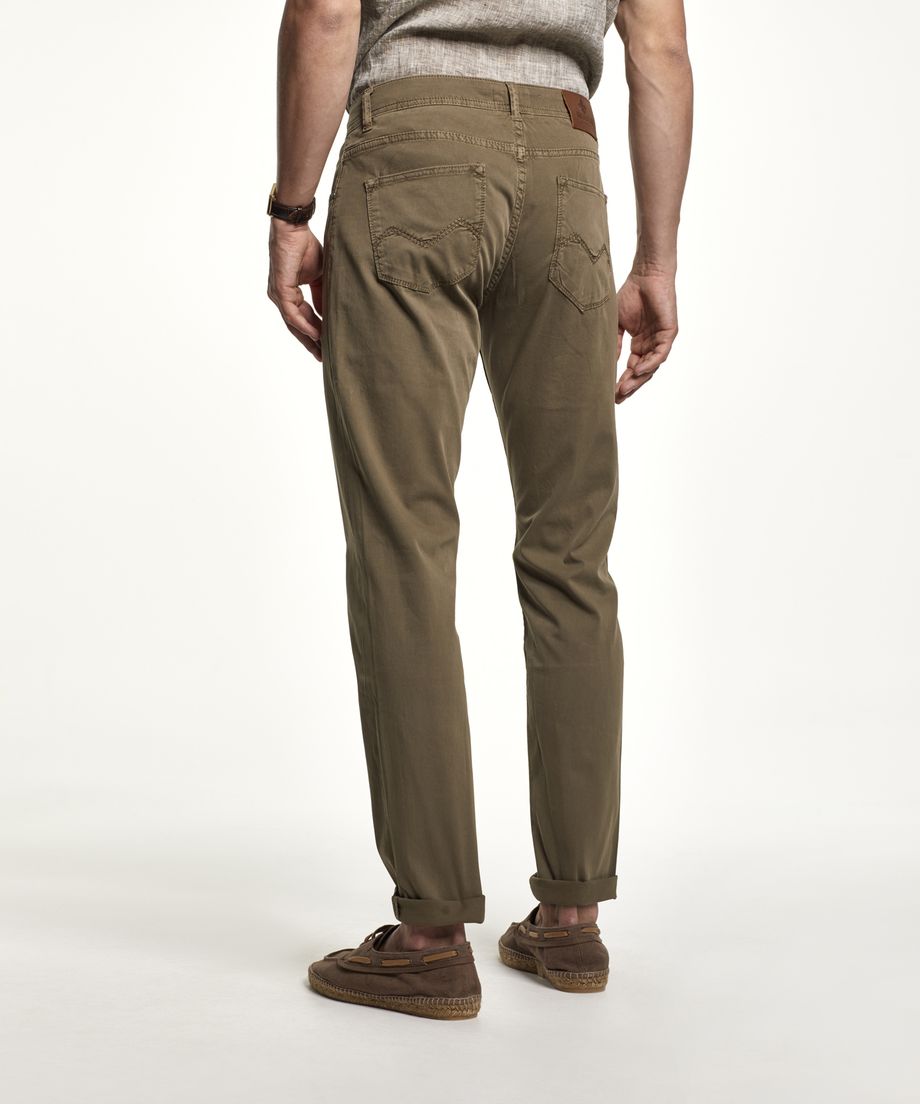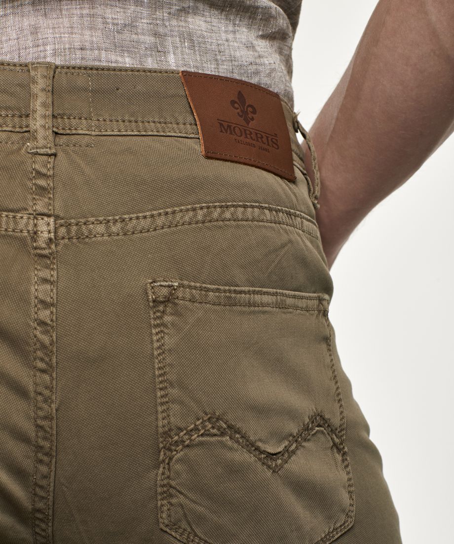 Classic 5-pockets made of a structure woven cotton fabric with slight stretch. The 5-pkts are garment dyed, which gives each trouser a unique and washed look. Closes with a metal button and button fly. The trouser has two front pockets, one coin pocket and two back pockets. The back pockets are decorated with signature embroidery. Normal fitPrinted pocket liningEmbroidered lily at coin pocket98% Cotton, 2% ElastaneMachine wash 40 degrees