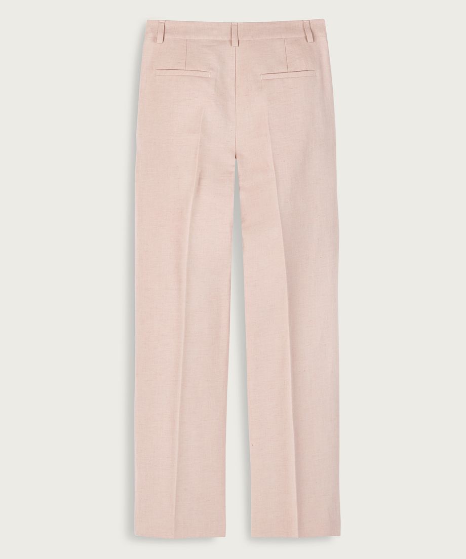 Lady suit trouser in cotton and linen, with high waist and straight leg with press folds. Closes with hidden hook and eye and button. The trouser has two slanted front pockets and two jetted back pockets. Normal fitmetal charm in gold metal placed at waistband80% Cotton, 20% LinenDry cleanYou find the matching blazer her: Tiona Linen BlazerThe model is 176 cm and wears size 36.