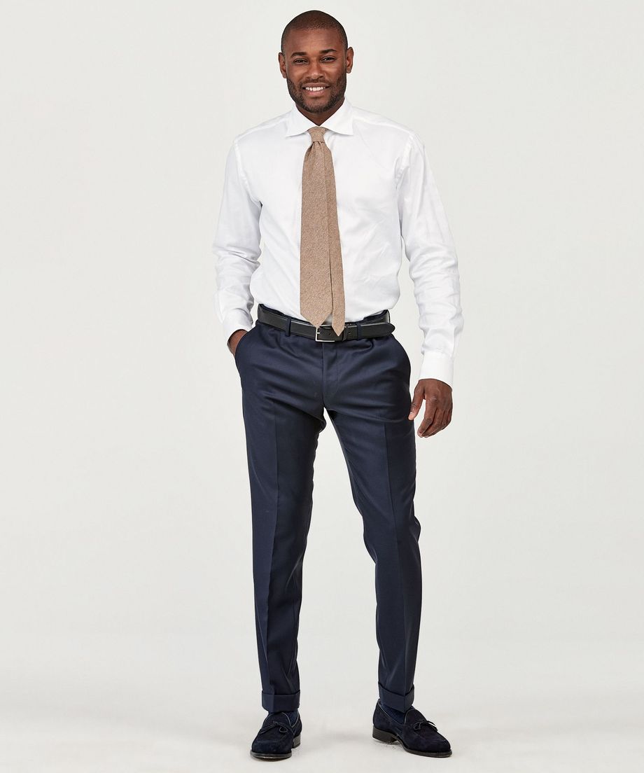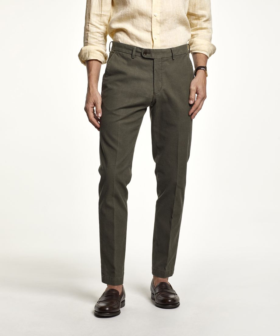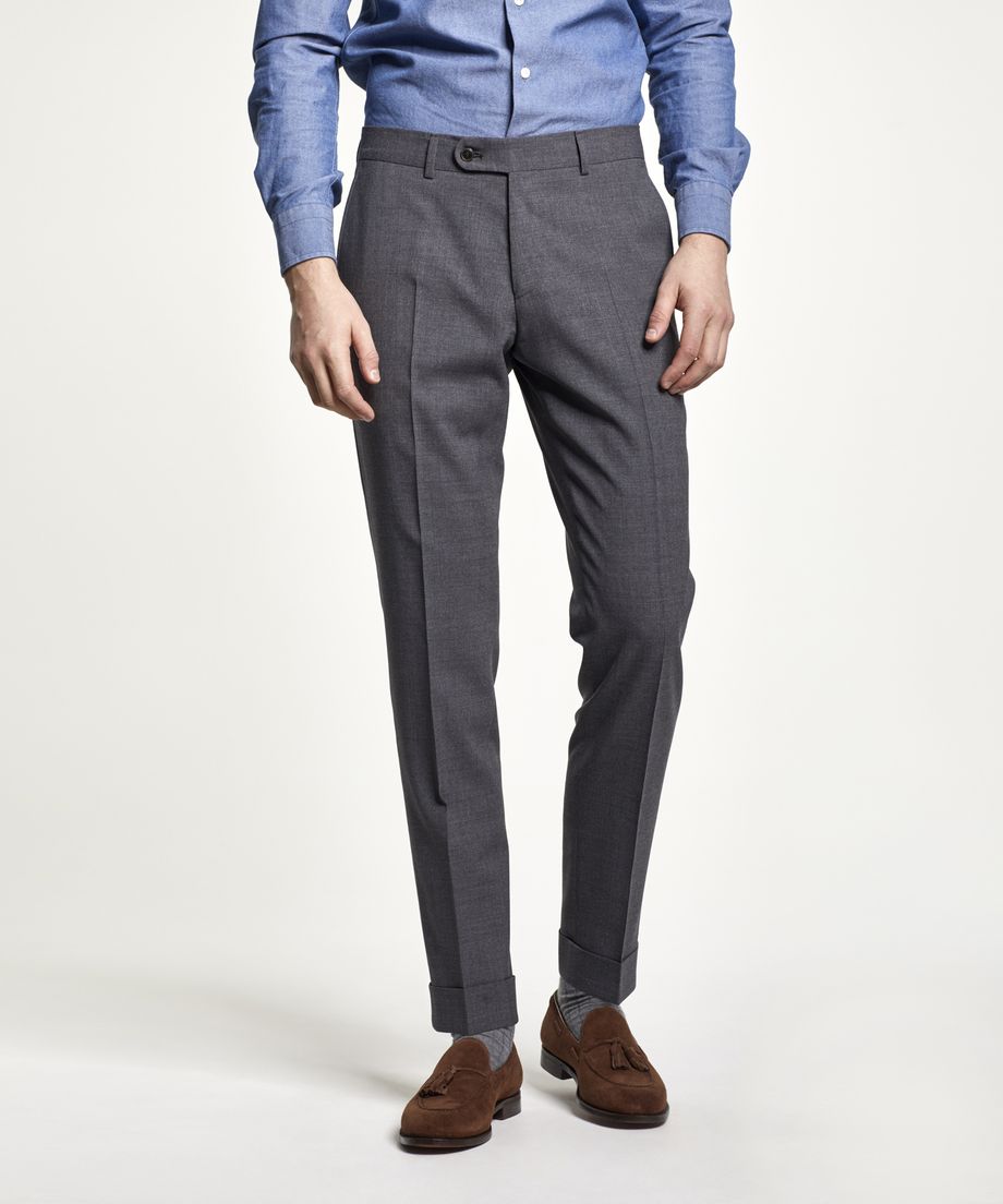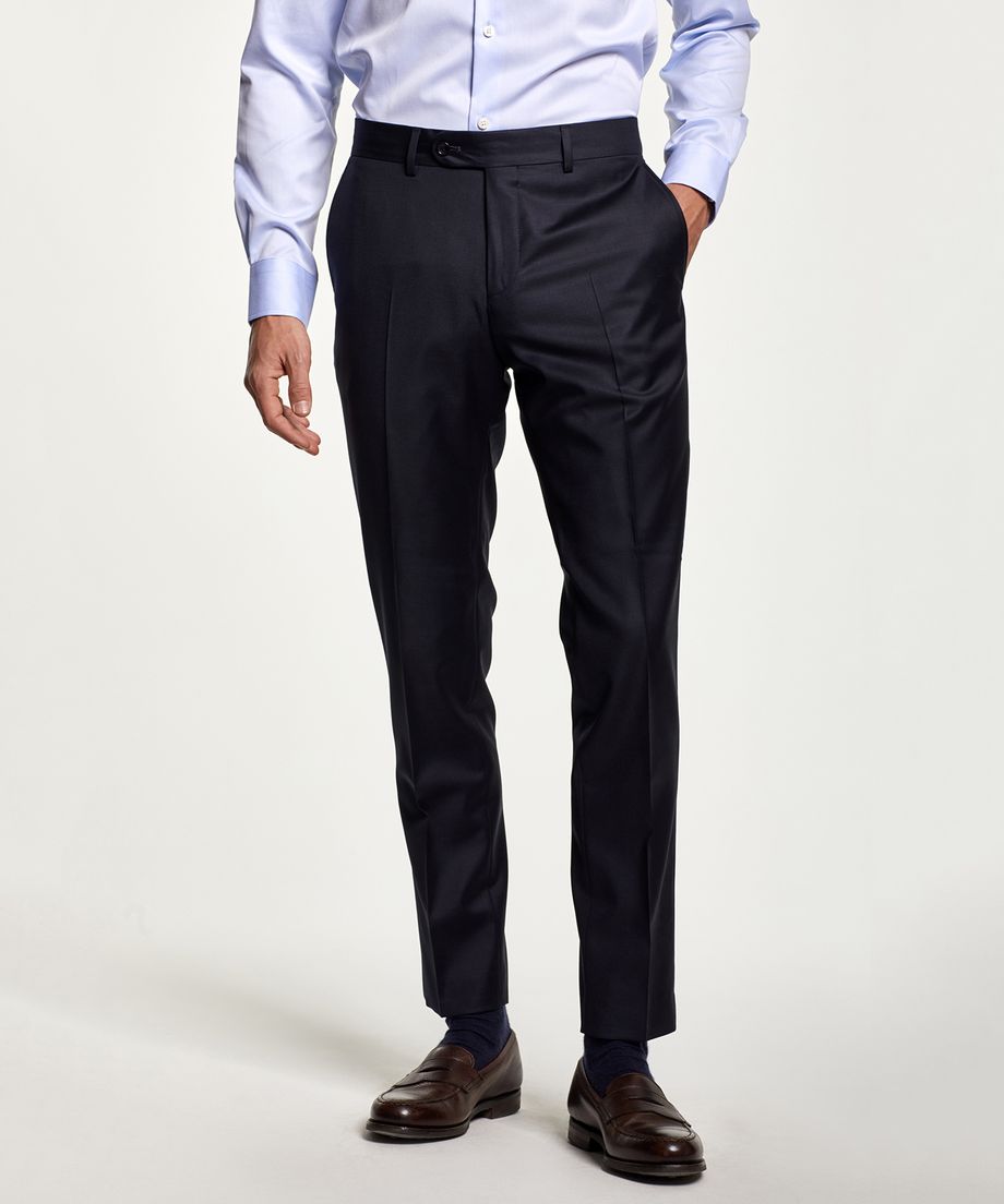 Premium suit trouser made of a checked linen fabric from the Italian weaver Solbiati. The trouser has a slightly higher waist, front pleats and side adjusters at waist. Closes with a button, hidden hook and eye and zip fly. Two slanted pockets and one coin pocket are placed at front. Two jetted pockets at back with button through. Five centimeters turn up at bottom hem. Normal fitKnee lined100% LinenDry cleanYou find the suit blazer to this suit trouser here: John Minicheck Suit BlazerThe model is 190 cm and wears size 48.