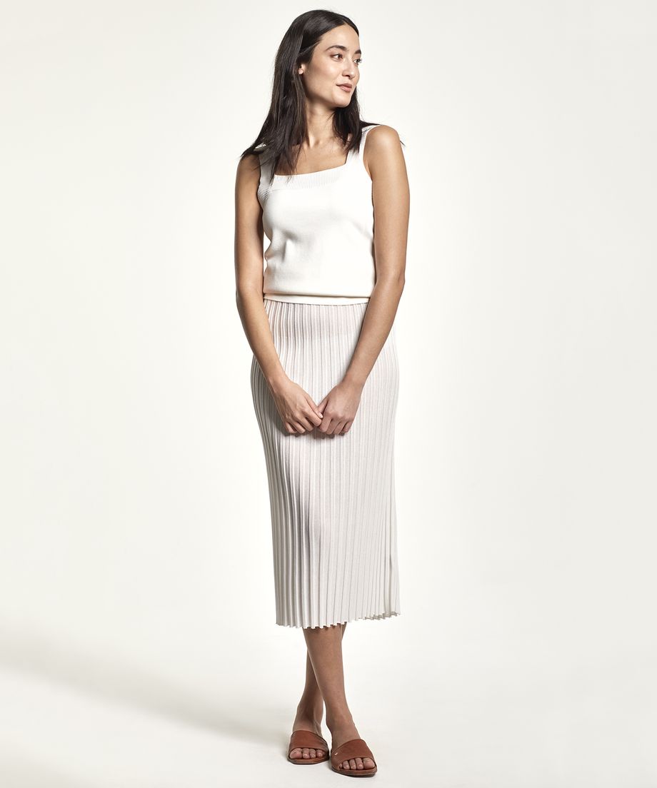 Knitted midi skirt.in a fine and thin quality, with decorative stripes in a divergent knitting technique. Wear the skirt together with the matching top Amiee Knit Top. Normal fitLinedmetal charm in gold metal placed below waistband.77% Viscose, 23% NylonLining: 100% PolyesterHand washThe model is 180 cm and wears size S.