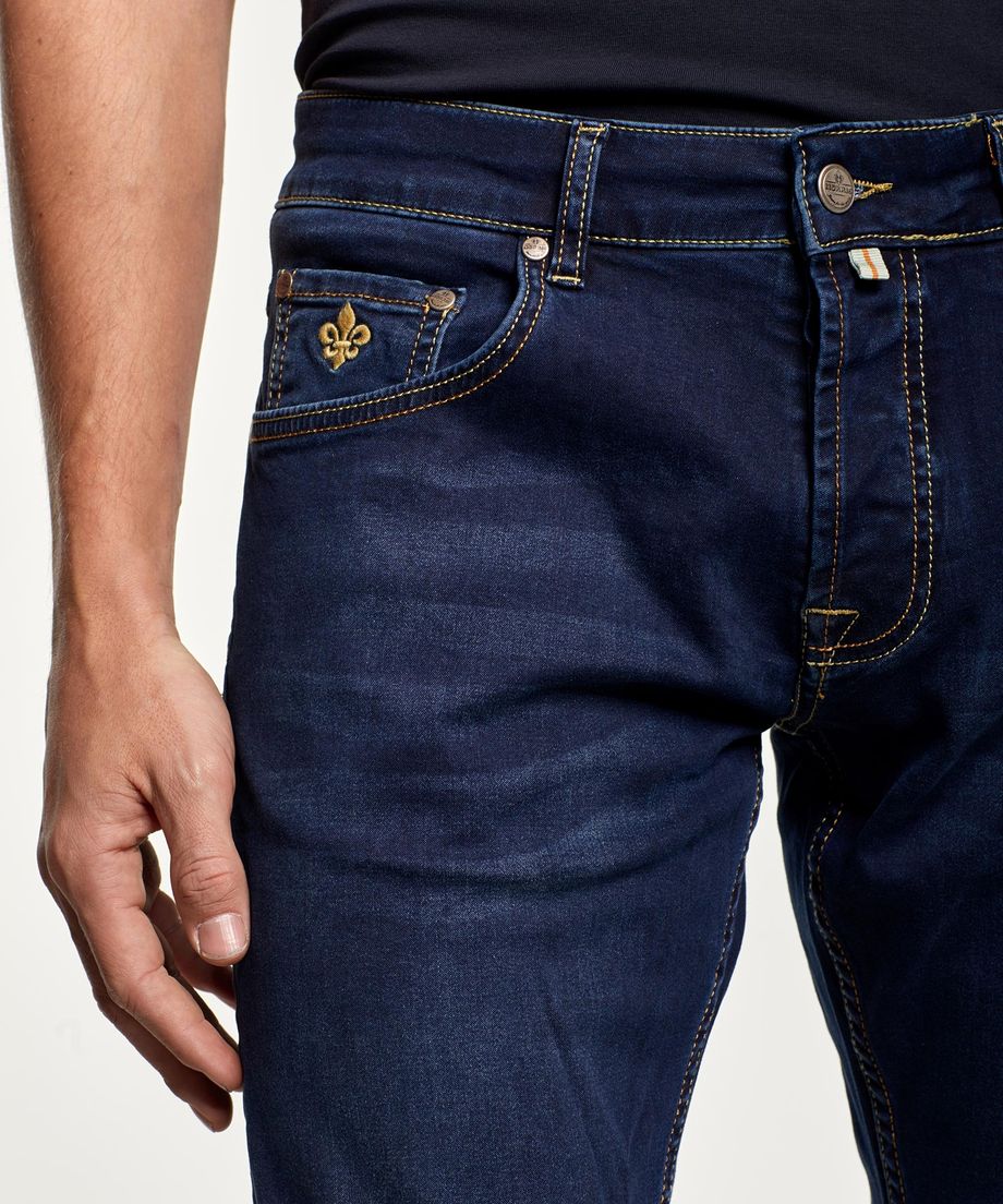 Our popular 5-pocket jeans made of a cotton stretch quality. The jeans close with button and button fly with metal buttons. The back pockets are decorated with signature embroidery. Normal fit. Embroidered lily at coin pocketLeather patch placed at back of waistbandMetal rivetsPrinted pocket lining98% Cotton, 2% ElastaneMachine wash 40 degrees