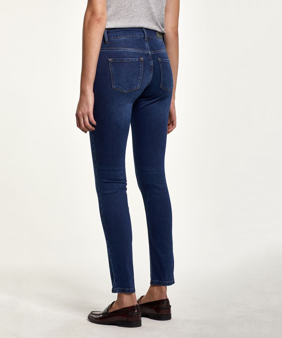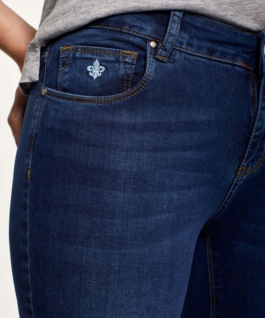 Stetchy cotton quality5-pocket stylingZip fly with a buttoned closureEmbroidered lily at the coin pocket and leather patch at the hem91% cotton, 8% polyester, 1% elatane Mashine washThe model is 180 cm and wears size 27/32.