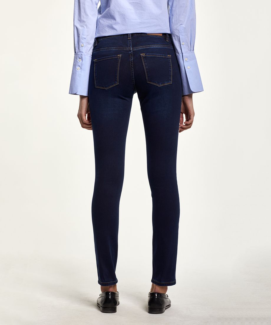 Stetchy cotton quality5-pocket stylingZip fly with a buttoned closureEmbroidered lily at the coin pocket and leather patch at the hem91% cotton, 8% polyester, 1% elatane Mashine washThe model is 180 cm and wears size 27/32.