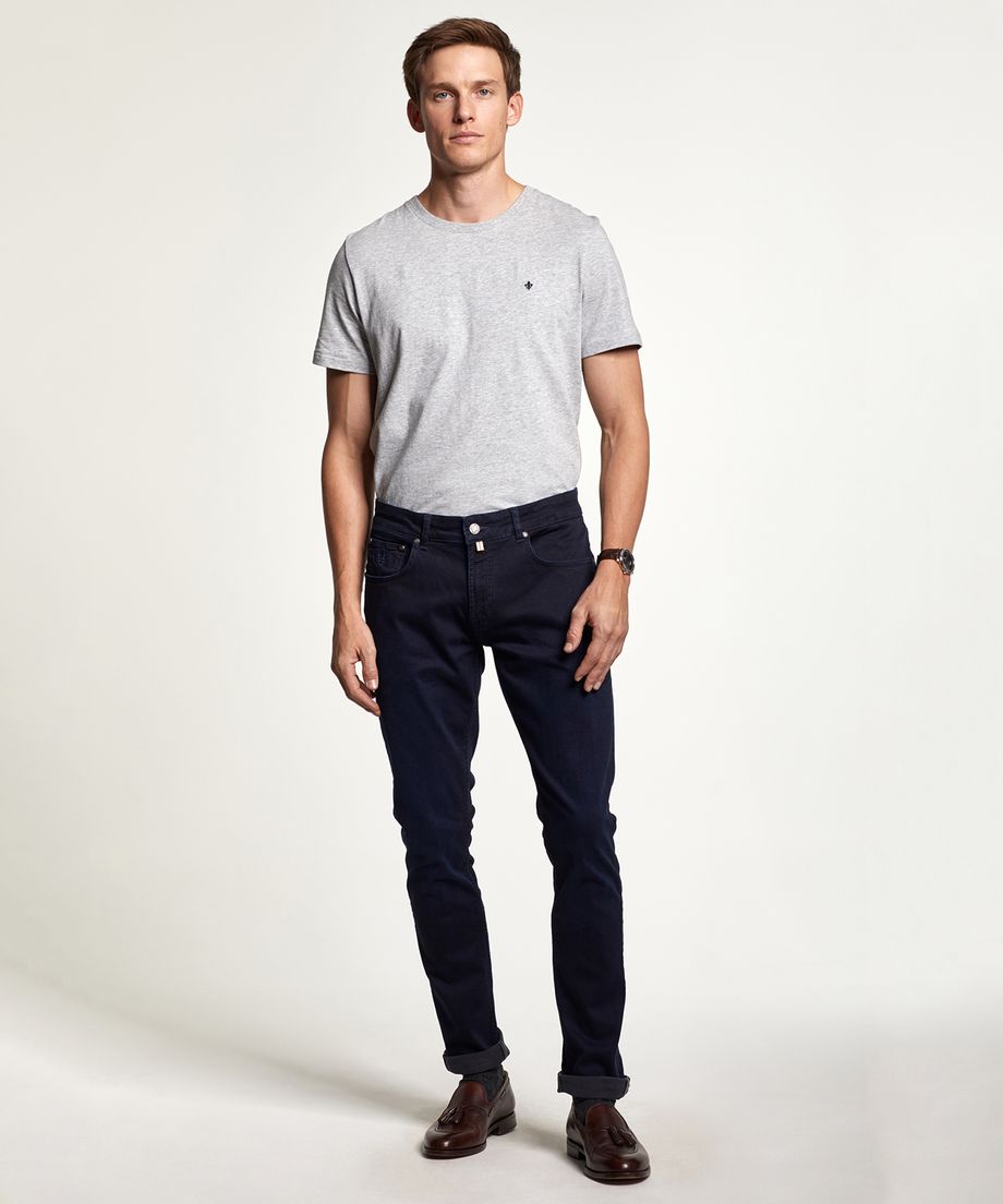 Our popular 5-pocket jeans made of a cotton stretch quality. The jeans close with button and metal zip fly. The back pockets are decorated with signature embroidery. Normal fit. Embroidered lily at coin pocketLeather patch placed at back of waistbandMetal rivetsPrinted pocket lining98% Cotton, 2% ElastaneMachine wash 40 degrees
