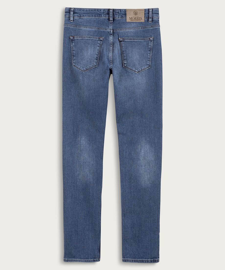 Jeans in 5-pocket model in normal fit and with slightly tapered legs. Buttoned fly and metal rivets at front. The jeans has belt loops, printed pocket lining and leather patch at back. 98% Cotton 2% ElastaneMachine wash