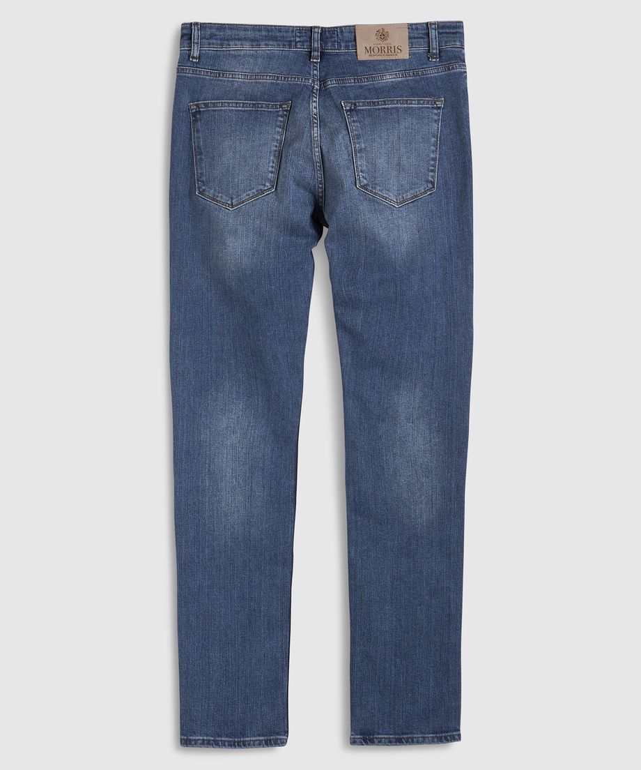 Jeans in 5-pocket model in normal fit and with slightly tapered legs. Buttoned fly and metal rivets at front. The jeans has belt loops, printed pocket lining and leather patch at back. 98% Cotton 2% ElastaneMachine wash