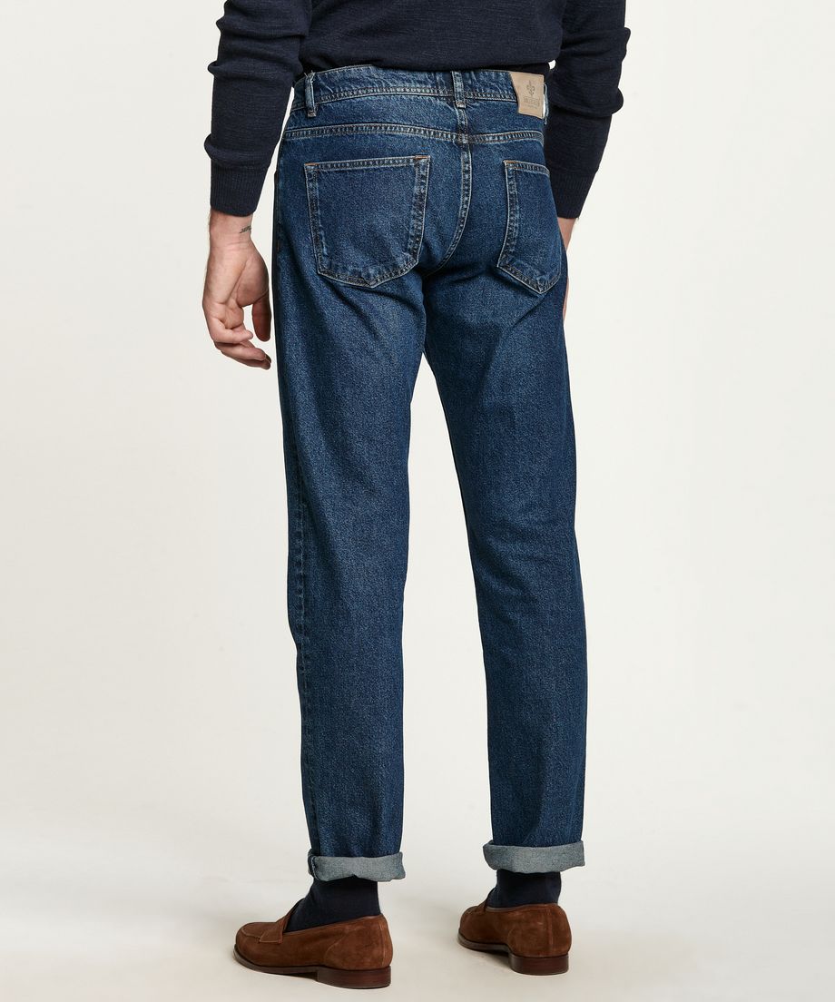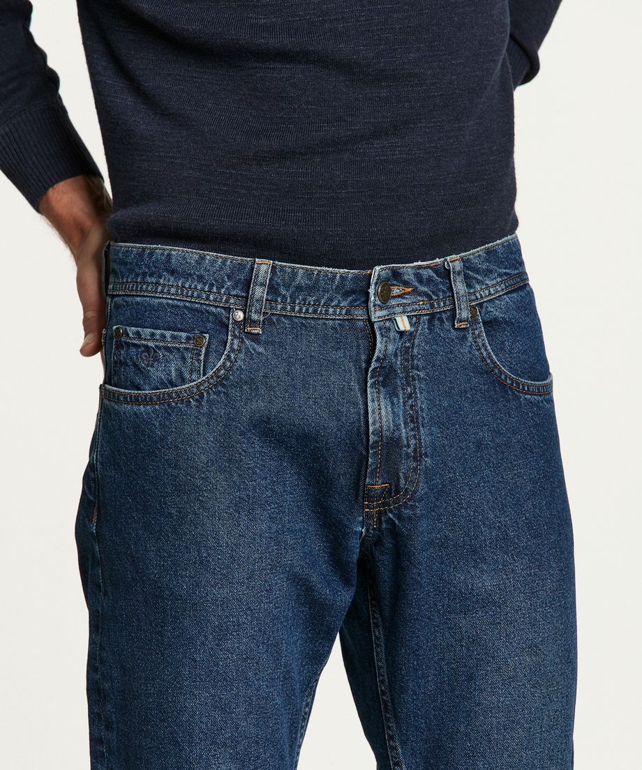 Jeans in 5-pocket model with straight fit. Zip fly, metal button and rivets at front. Leather patch at back. Printed pocket lining. Embroidered lily on coin pocket100% CottonMashine wash 40 degrees. These jeans runs small, please size up.