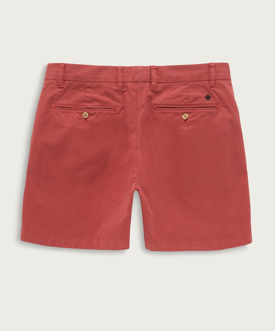 Popular chino shorts with a slightly shorter length, made of a cotton twill with slight stretch. The shorts have two slanted front pockets, one coin pocket and double welt pockets with button through. Closes with button, metal zipper and hidden support button. The buttons on the shorts are corozo buttons, made of the nuts from the corozo palm. Normal fitPrinted pocket liningEmbroidered lily above right back pocketGarment dyed for a unique look and washed look98% Cotton, 2% ElastaneMachine wash 40 degrees