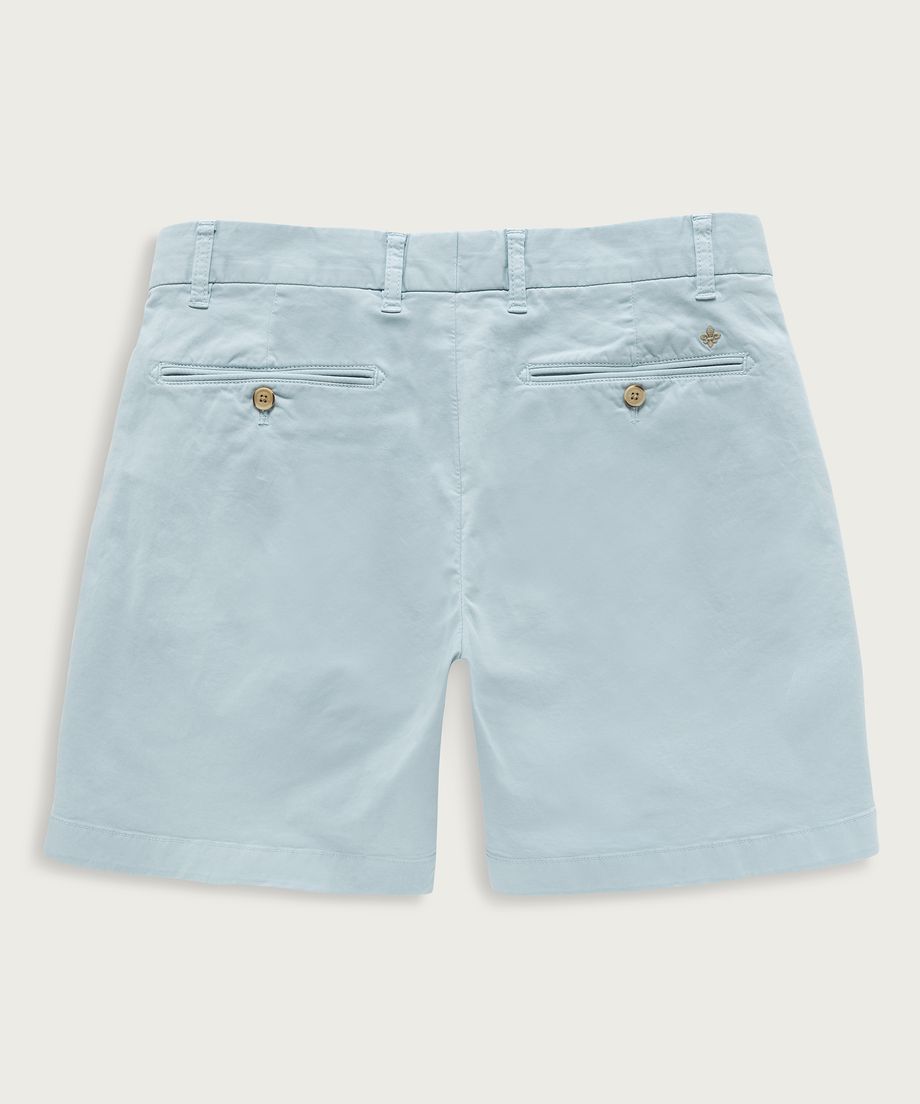 Popular chino shorts with a slightly shorter length, made of a cotton twill with slight stretch. The shorts have two slanted front pockets, one coin pocket and double welt pockets with button through. Closes with button, metal zipper and hidden support button. The buttons on the shorts are corozo buttons, made of the nuts from the corozo palm. Normal fitPrinted pocket liningEmbroidered lily above right back pocketGarment dyed for a unique look and washed look98% Cotton, 2% ElastaneMachine wash 40 degrees
