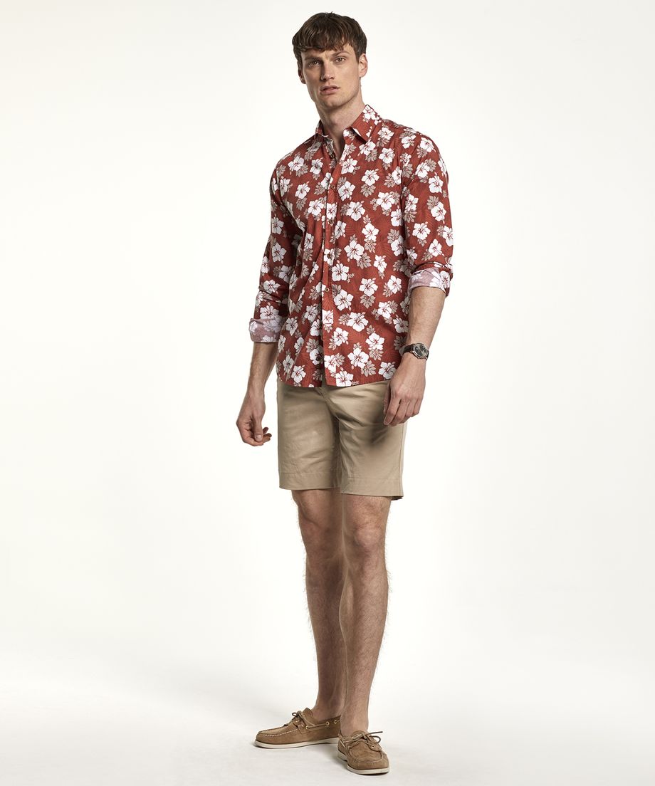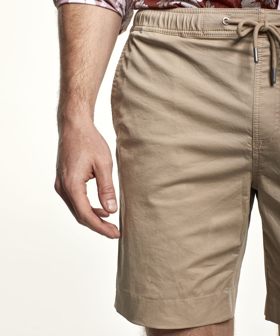 Winward Shorts is a new style in the shorts assortment. This style is a pull-on shorts with an elasticated waist, adjusted with a drawcord. The fit is relaxed with a medium rise. The shorts are made of a lightweight cotton twill with a slight stretch from Textil Santanderina. Two slanted pockets are placed at front, at back two double welt pockets with button closure are placed. The buttons on the shorts are corozo buttons, made from the corozo palm’s nuts. Normal fit. Embroidered lily above right back pocketGarment dyed for a unique look and washed look95% Cotton, 5% LycraMachine wash 30 degrees. The model is 189 cm and wears size 32.