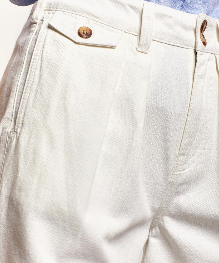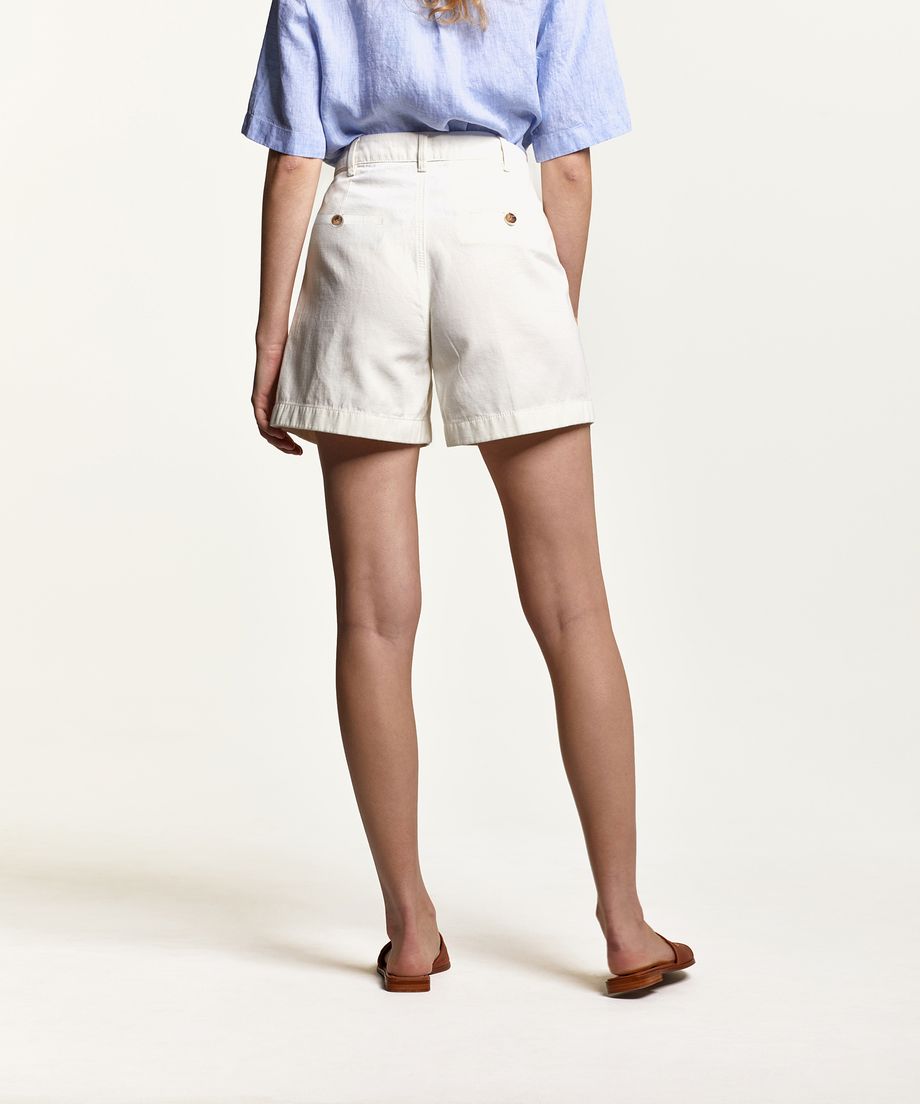 Lady’s new chino shorts with inspiration from the men’s wardrobe. The shorts have high waist, front pleats, straight leg with press folds and turned-up hem. Closes with two buttons and a metal zipper. The shorts have a decorative coin pocket, two front pockets placed at side seams and back pockets with button through. Paulette Chino Shorts are timeless and last season after season. Normal fit80% Cotton, 20% Linen. Machine wash 30 degrees