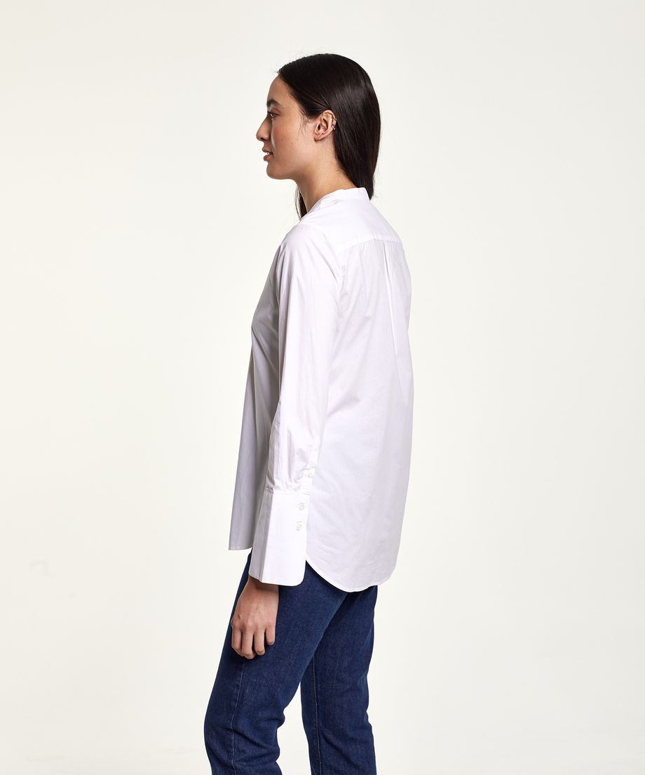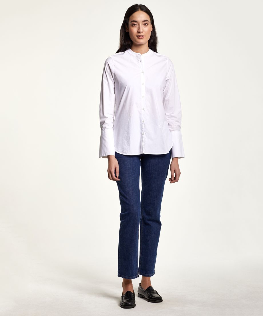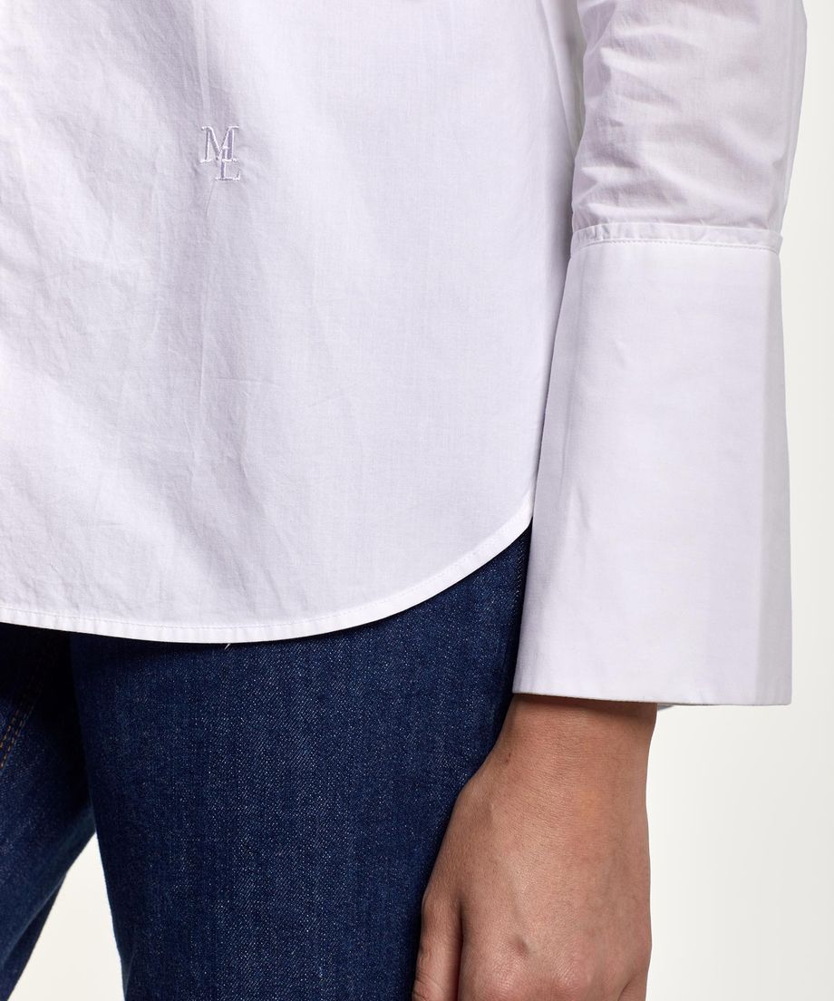 Shirt in a longer model an normal fit. The shirt has band collar and long cuff with slightly rounded corners with two buttons. embroidery100% CottonMachine wash 40 degrees. The model is 180 cm and wears size 36.