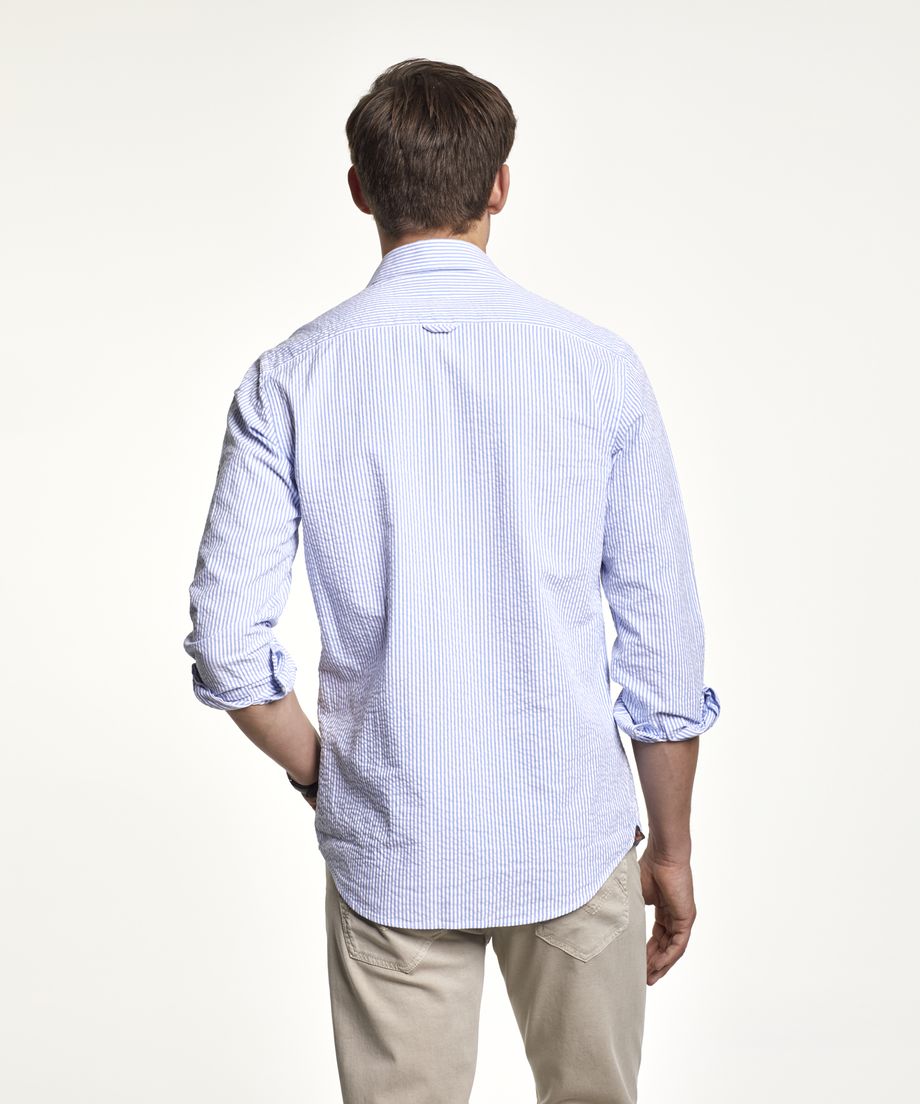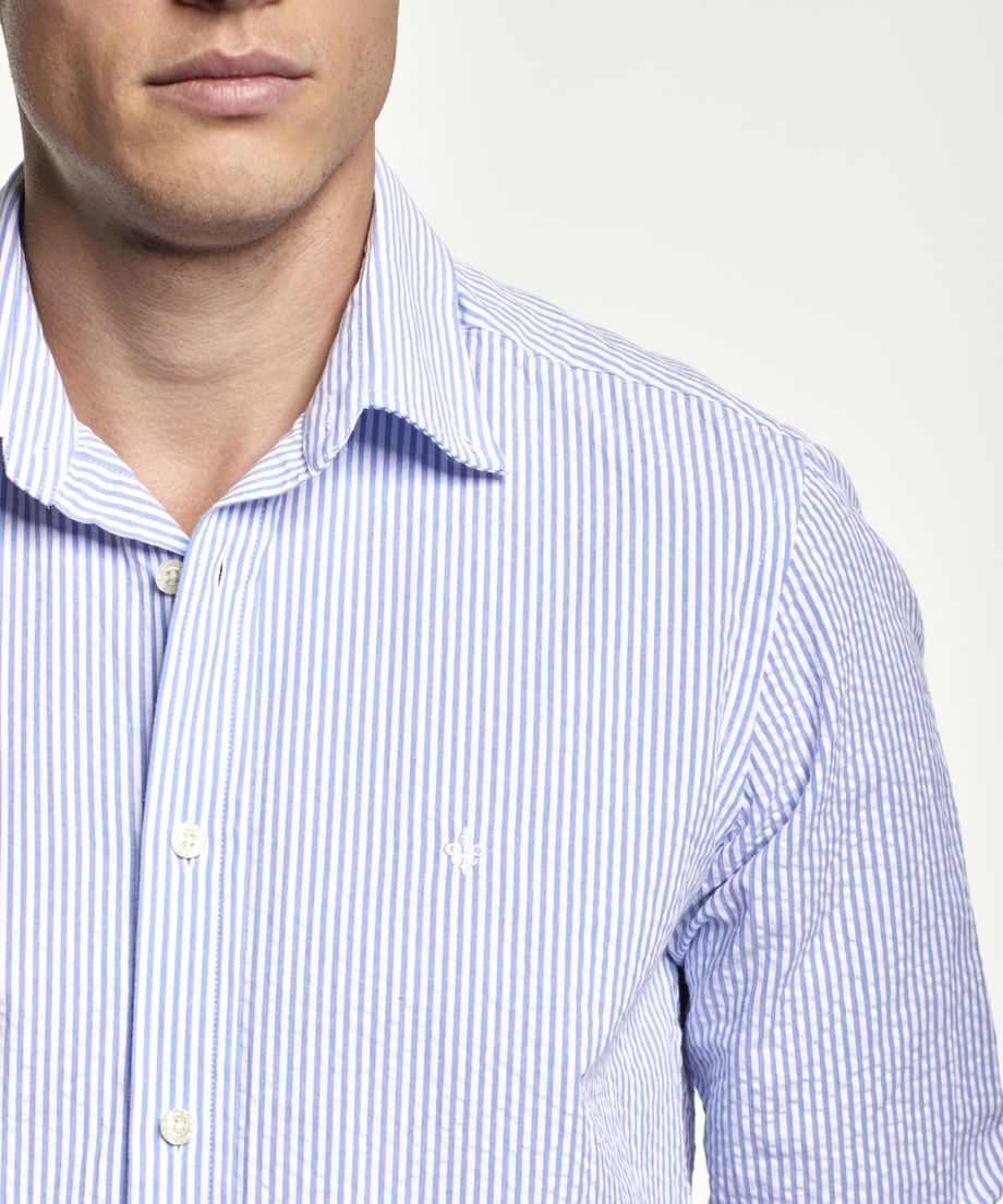 The perfect shirt for spring and summer in classic seersucker with stripes and a timeless solid white colour. The shirt has a button down collar, long sleeve and single cuff slightly rounded with two buttons. Regular fitEmbroidered lily at left chest100% CottonMachine wash 30 degrees