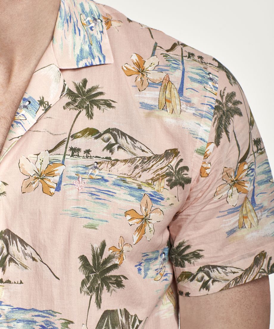 Bowling shirt with a tropical print, made in a French cotton quality from Sprintex. The shirt has short sleeve and a turned up back cuff. Regular fitEmbroidered lily at left chest100% CottonMachine wash 30 degrees