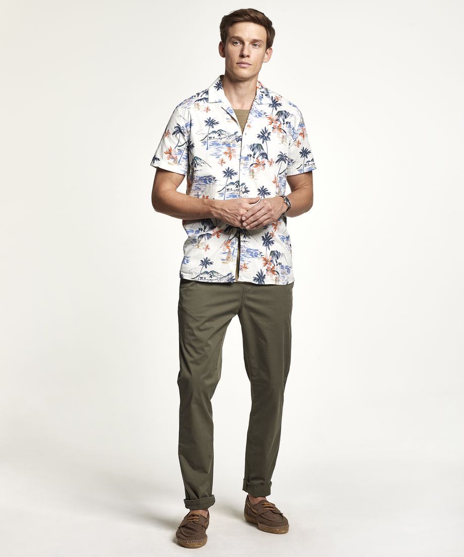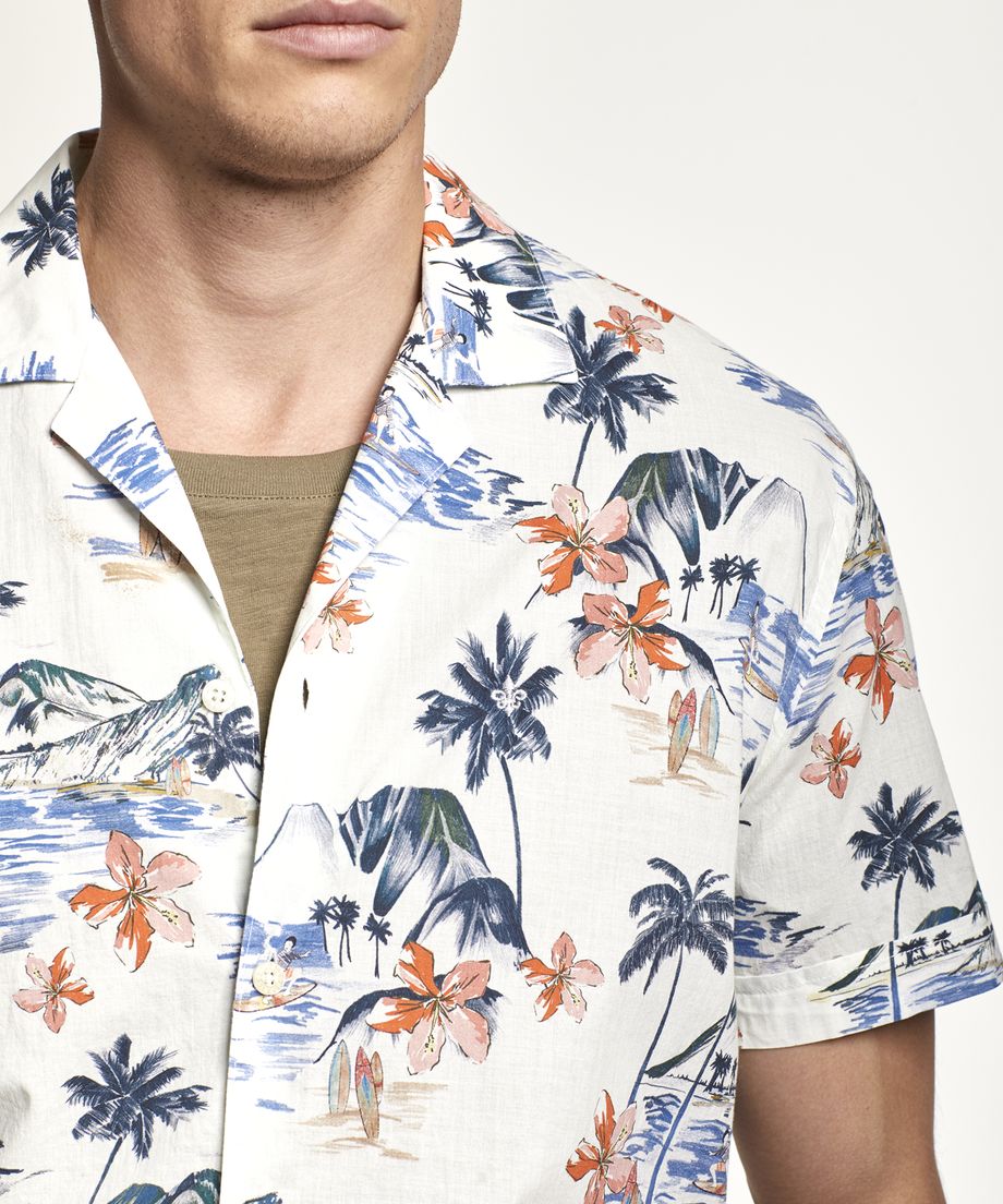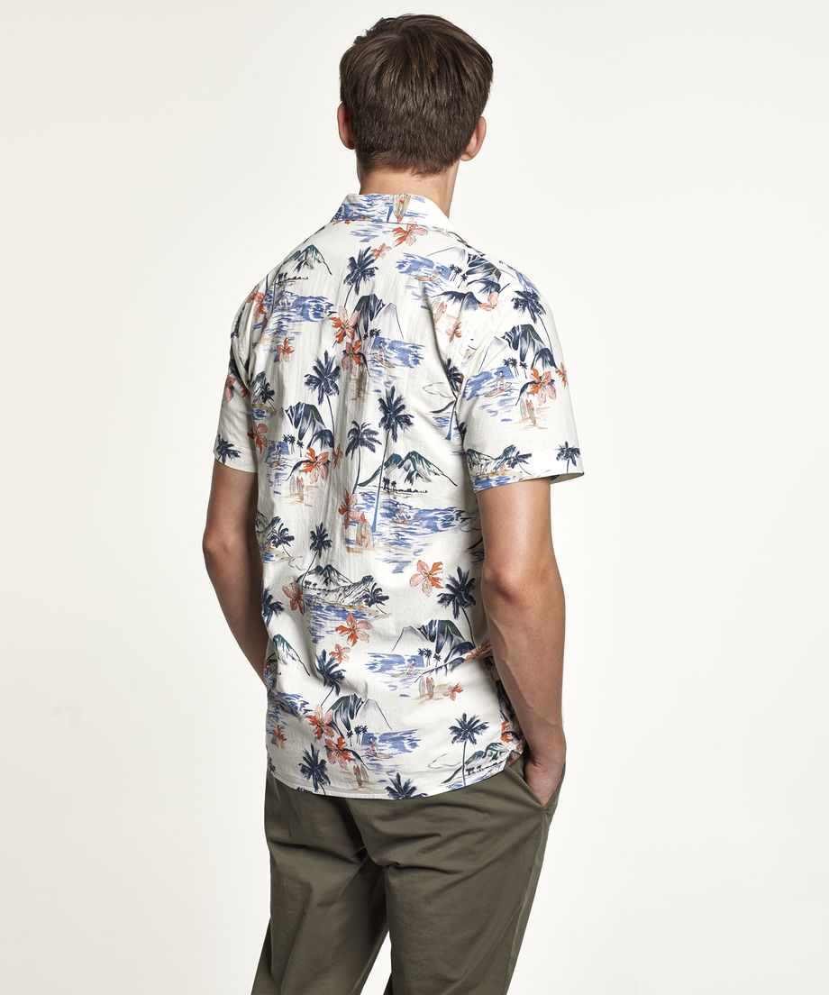 Bowling shirt with a tropical print, made in a French cotton quality from Sprintex. The shirt has short sleeve and a turned up back cuff. Regular fitEmbroidered lily at left chest100% CottonMachine wash 30 degrees