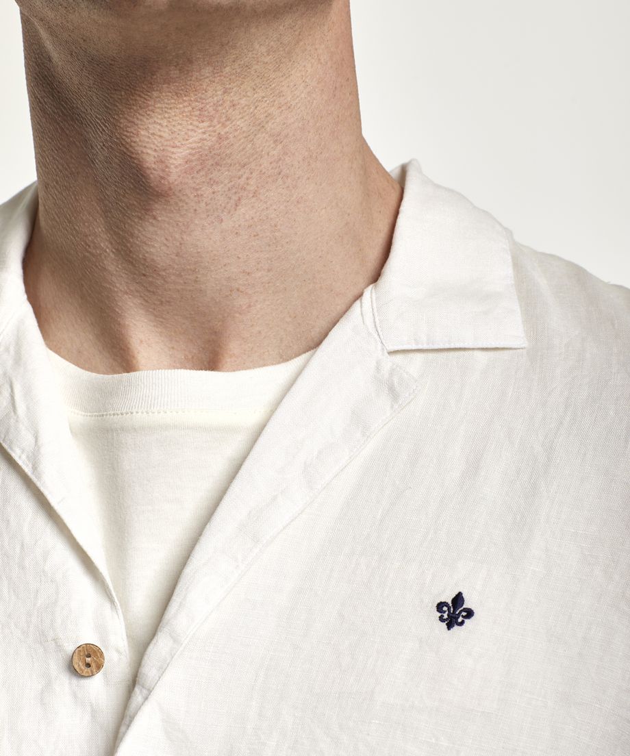 Bowling shirt in linen with short sleeve and a turned up back cuff. The shirt has decorative buttons made of coconut. Regular fitEmbroidered lily at left chestGarment dyed for a washed and unique look100% Linen. Machine wash 30 degrees