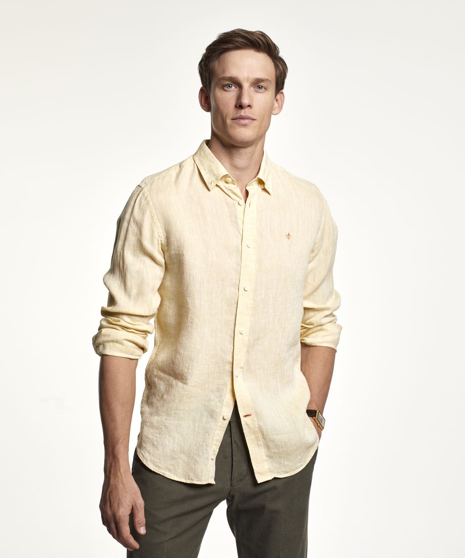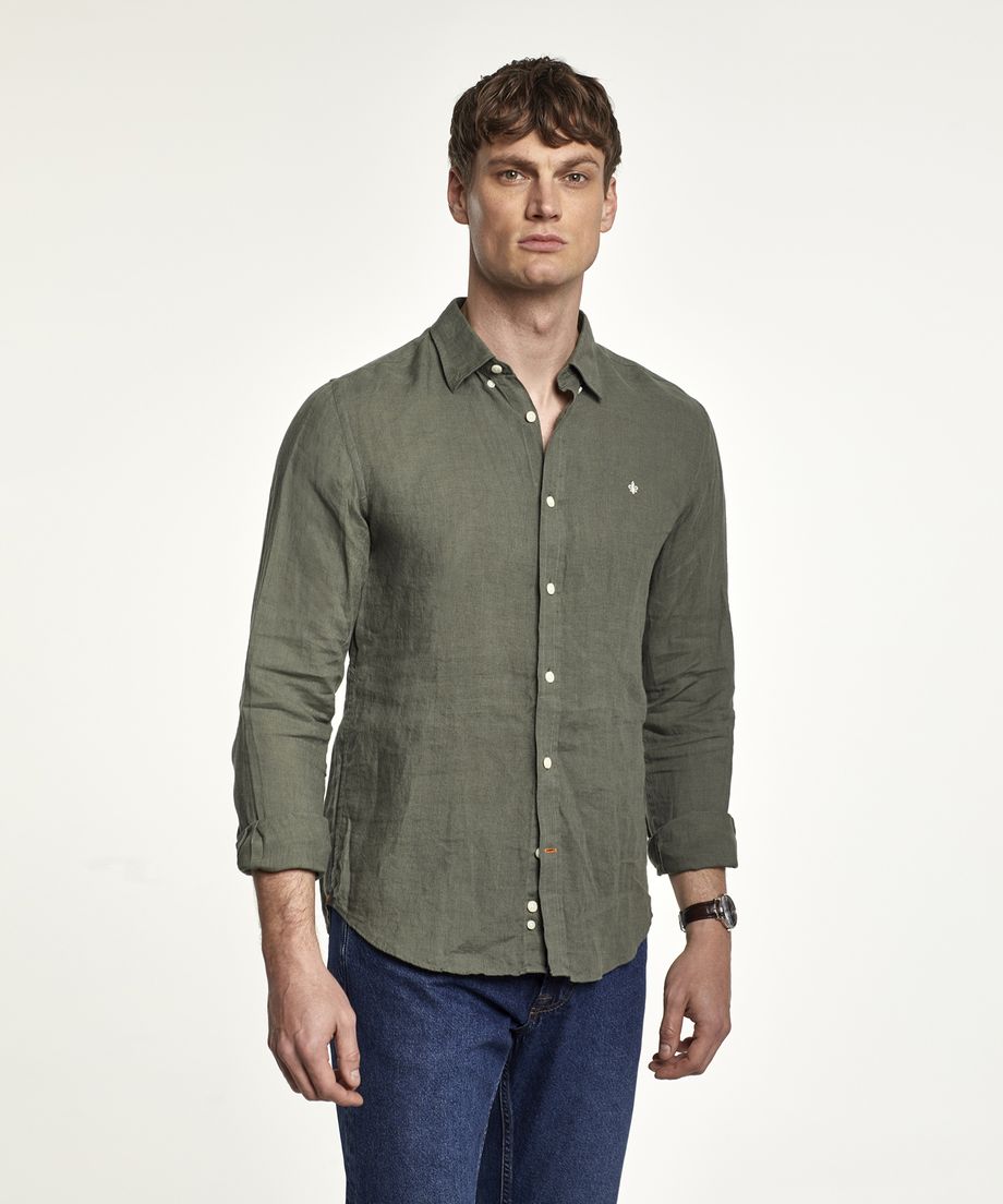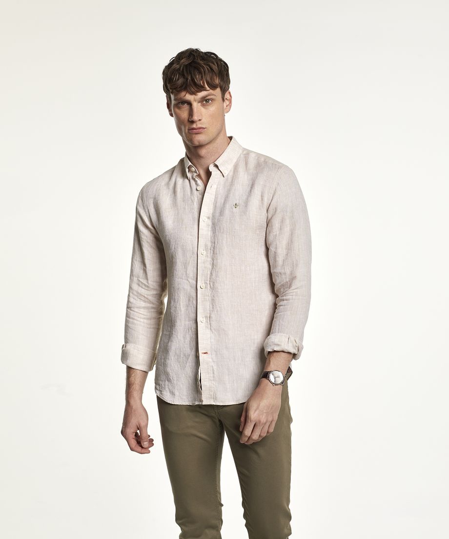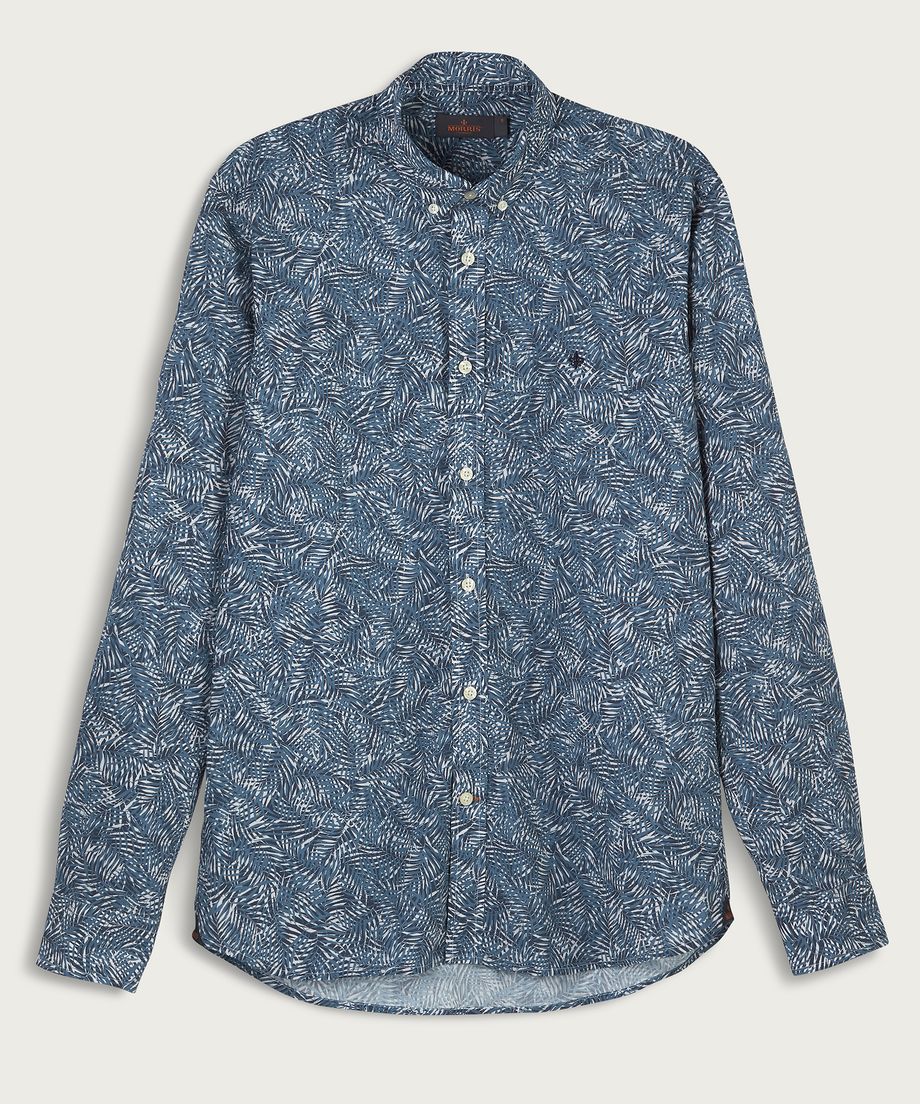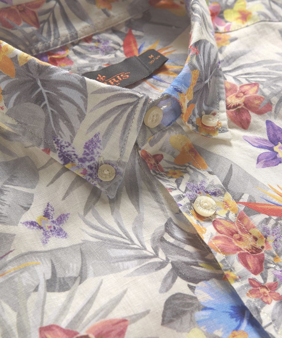 Linen shirt with a colourful and tropical print. The shirt has button down collar and long sleeve. Single cuff slightly rounded with two buttons.Regular fitEmbroidered lily at left chest100% Linen. Machine wash 30 degrees