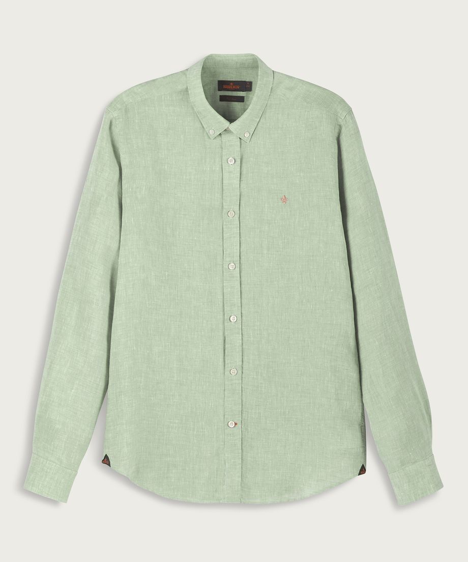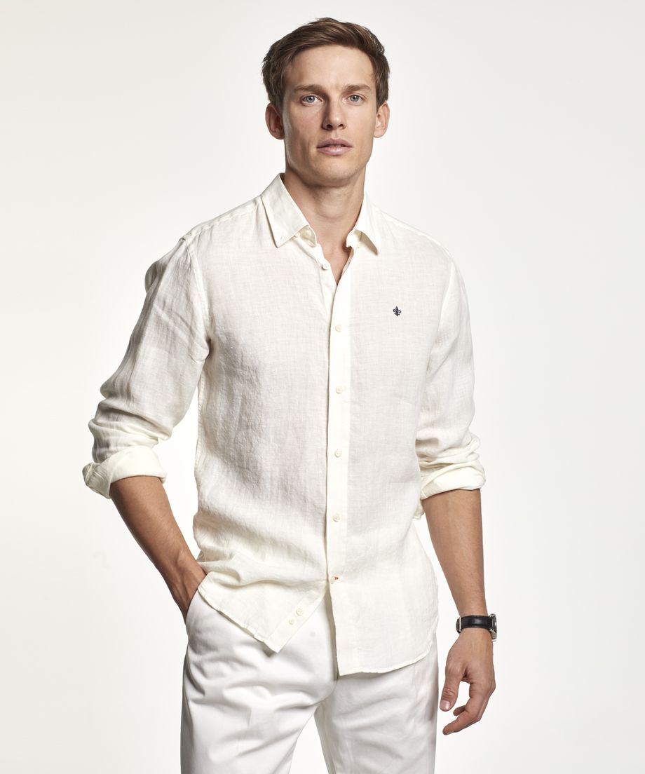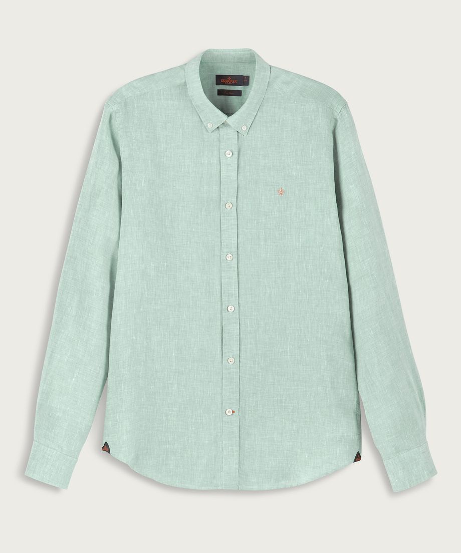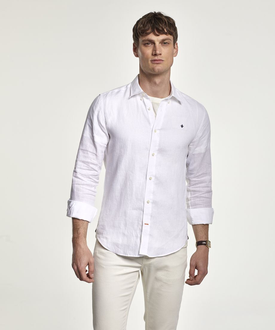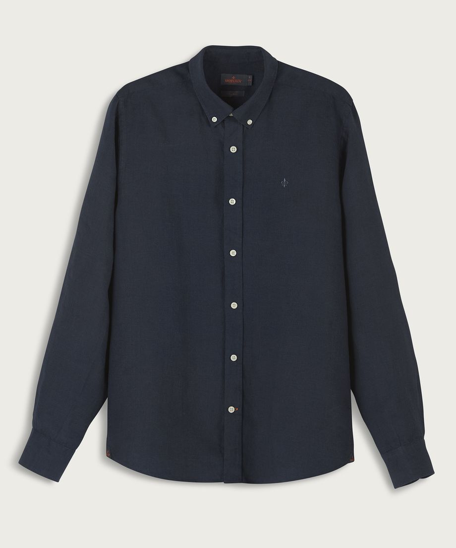 Linen shirt with a colourful and tropical print. The shirt has button down collar and long sleeve. Single cuff slightly rounded with two buttons.Regular fitEmbroidered lily at left chest100% Linen. Machine wash 30 degrees