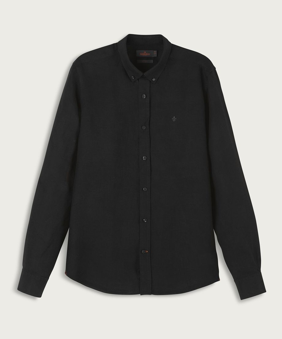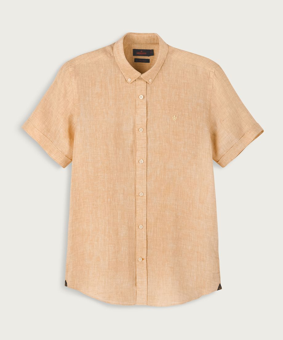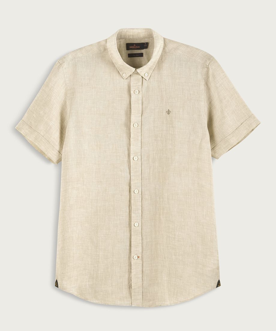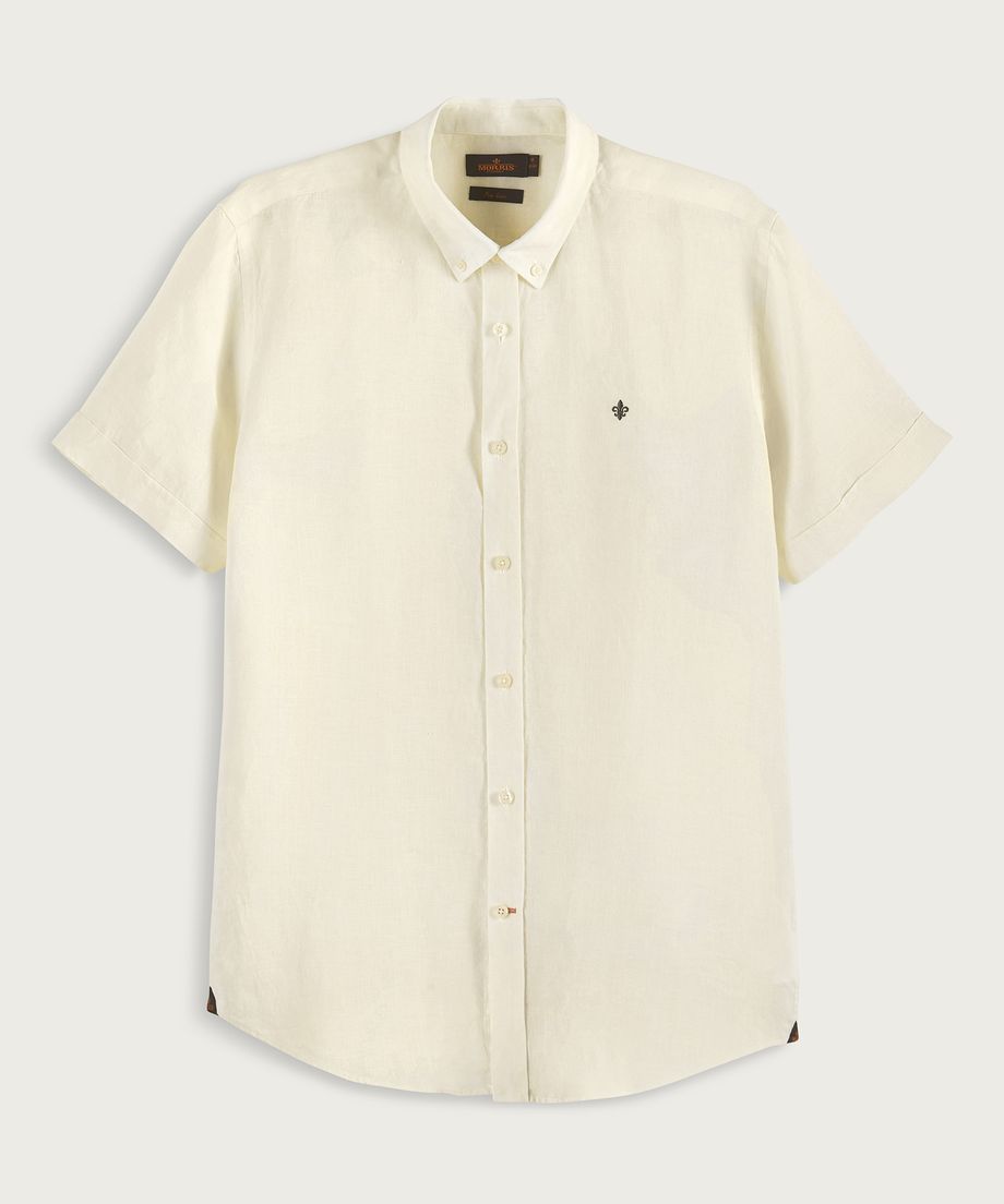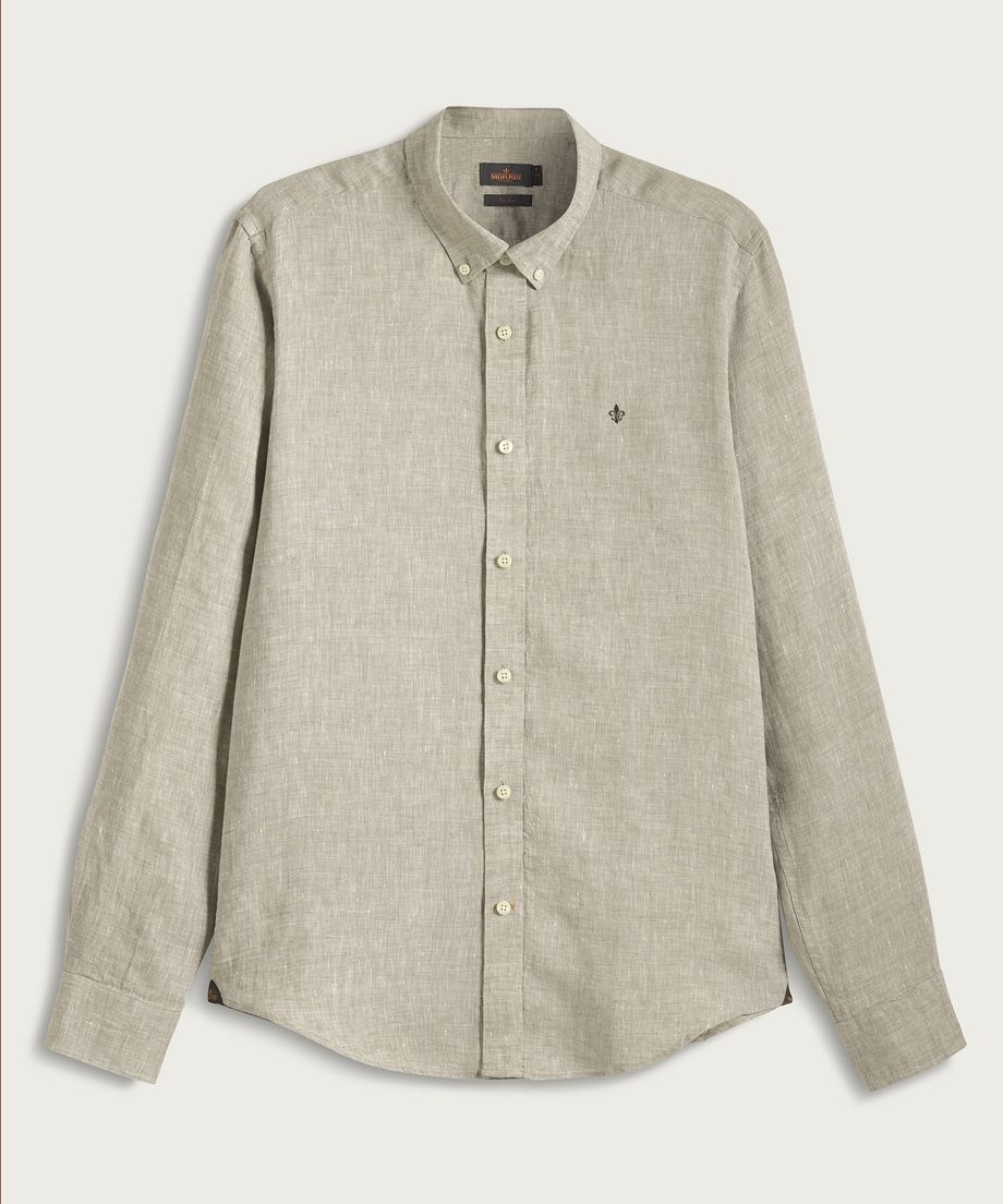 Linen shirt with a colourful and tropical print. The shirt has button down collar and long sleeve. Single cuff slightly rounded with two buttons.Regular fitEmbroidered lily at left chest100% Linen. Machine wash 30 degrees