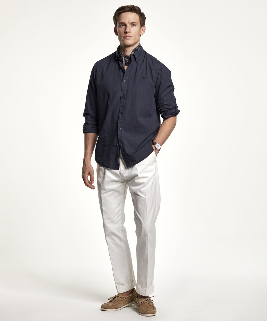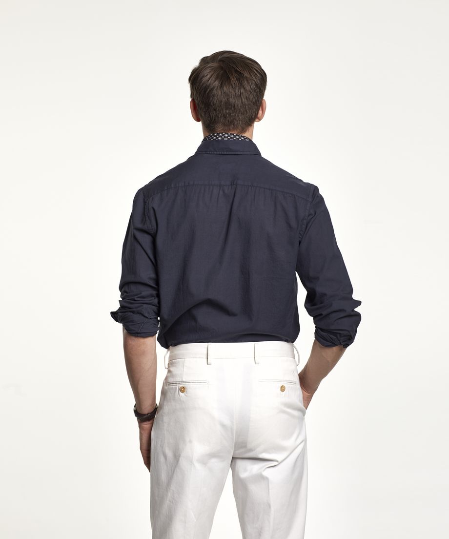 Shirt in fine cotton poplin with button under collar. The shirt has long sleeve and single cuff slightly rounded with two buttons. Regular fitEmbroidered lily at left chest100% CottonMachine wash 30 degrees. The model is 184 cm and wear size M.