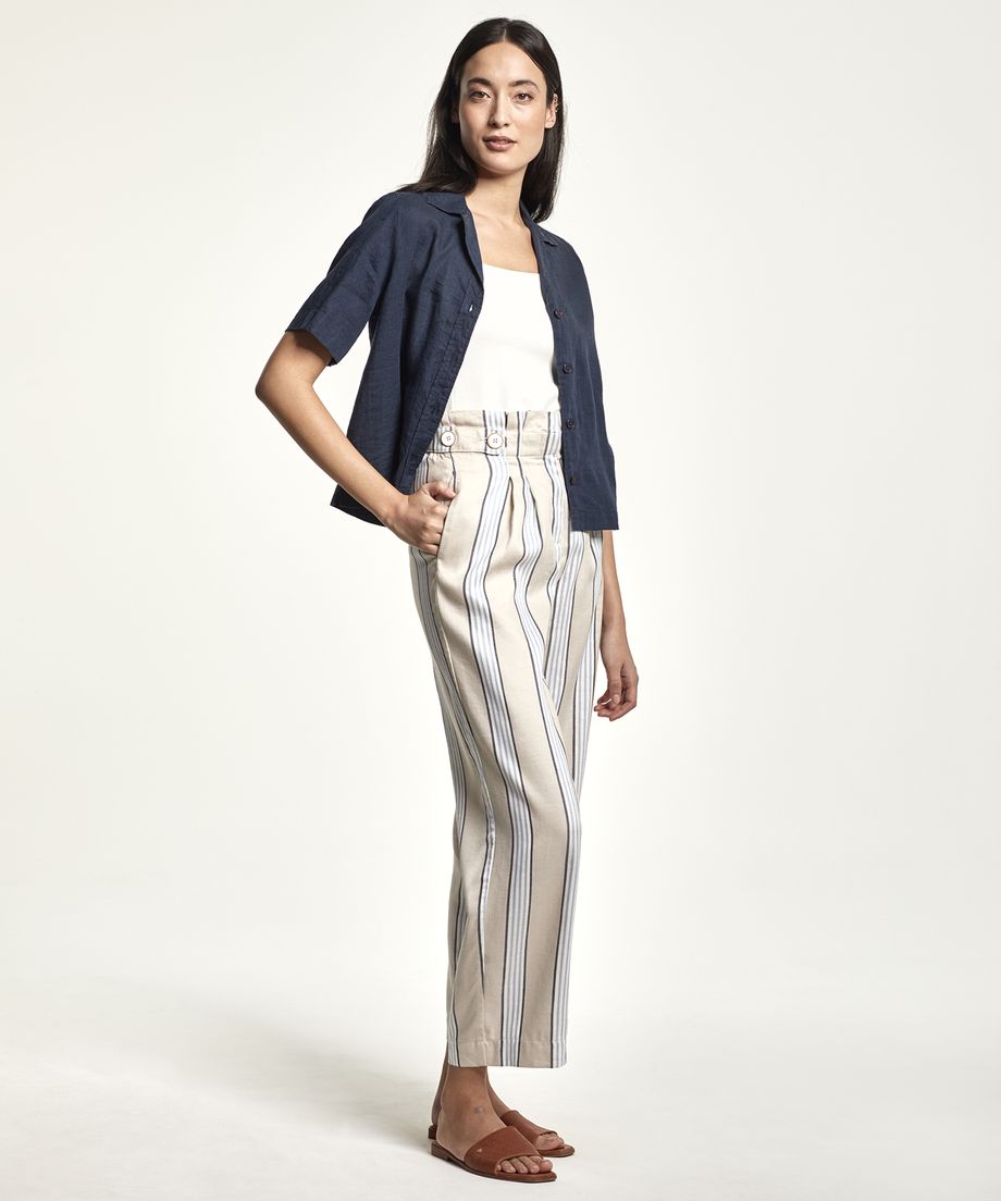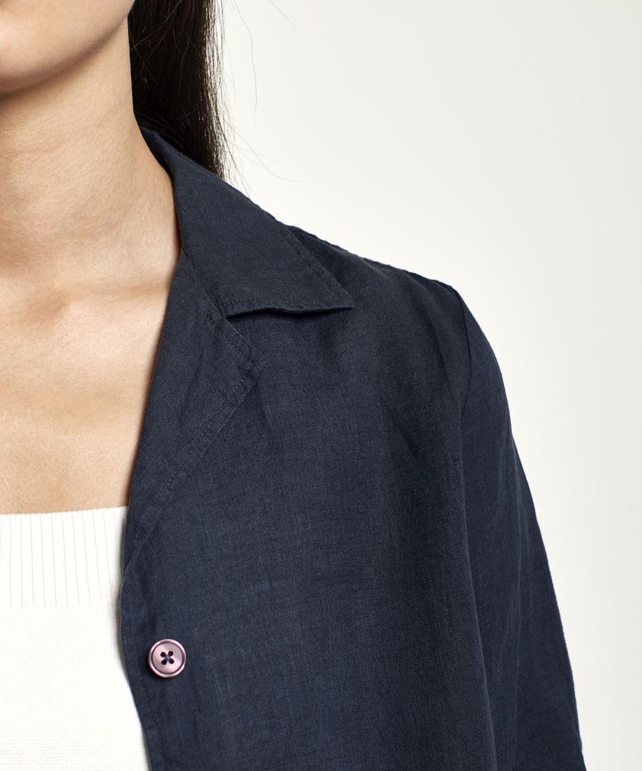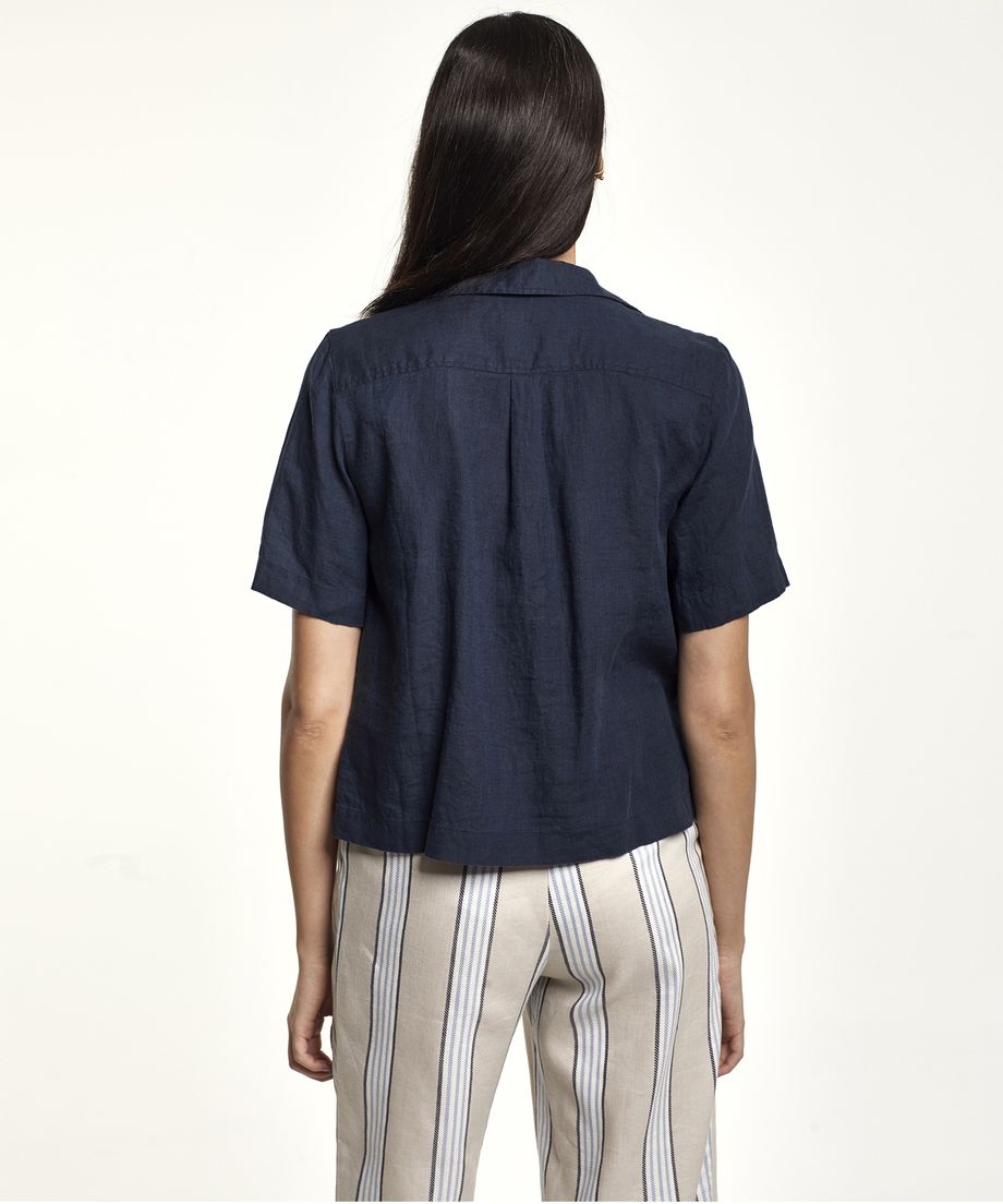 Lady’s classic linen shirt with short sleeve, bowling collar and slightly loose fit. 100% Linen. Machine wash 30 degrees