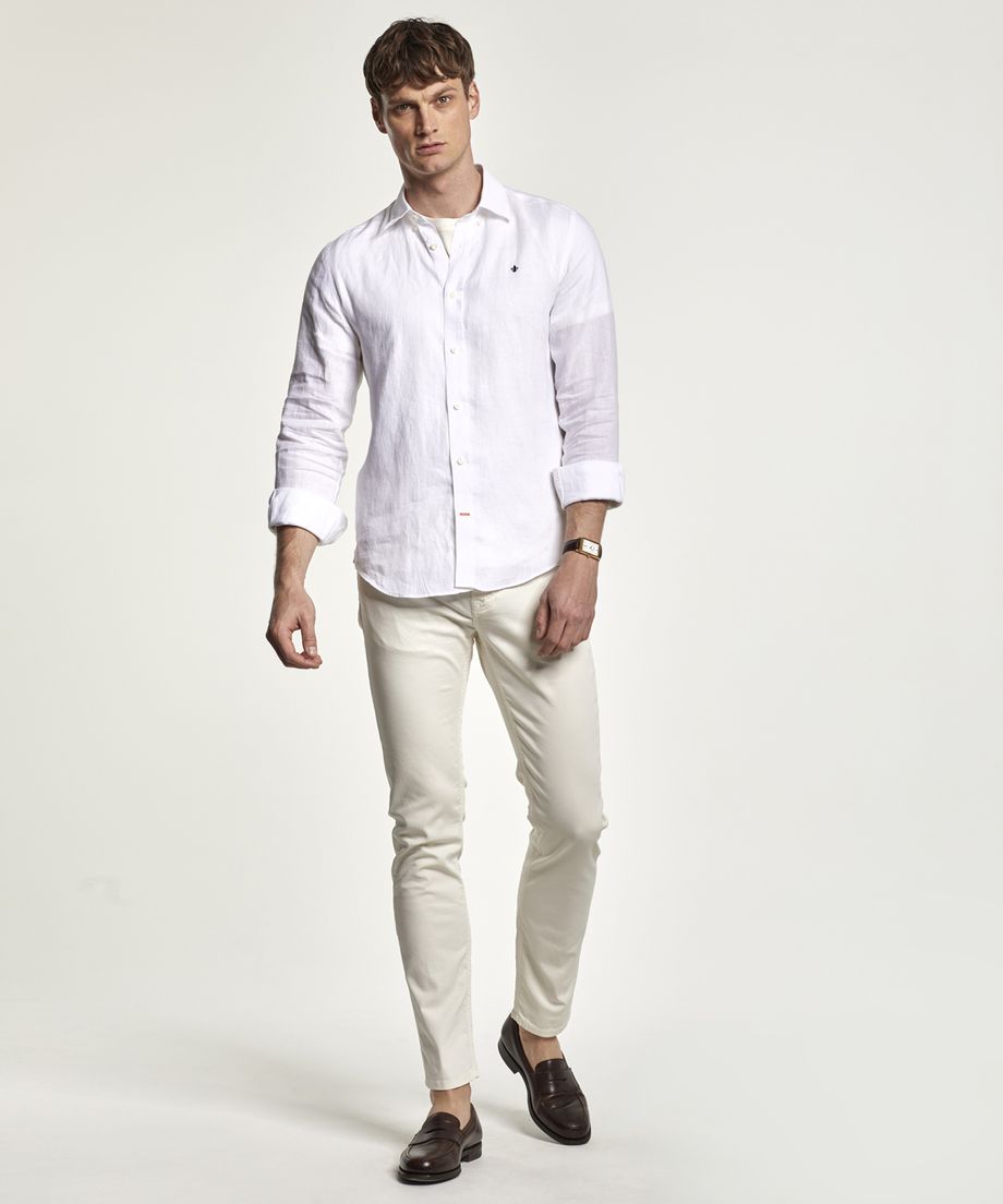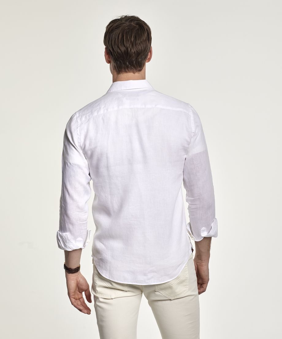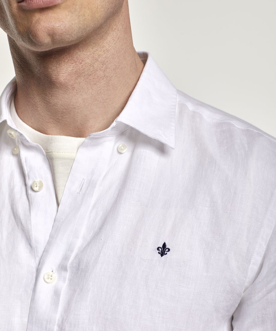Popular linen shirt with button down collar and long sleeve. The shirt as single cuff slightly rounded with two buttons. This is the perfect spring and summer shirt and comes in a wide colour range.Regular fitEmbroidered lily at left chest100% Linen. Machine wash 30 degrees
