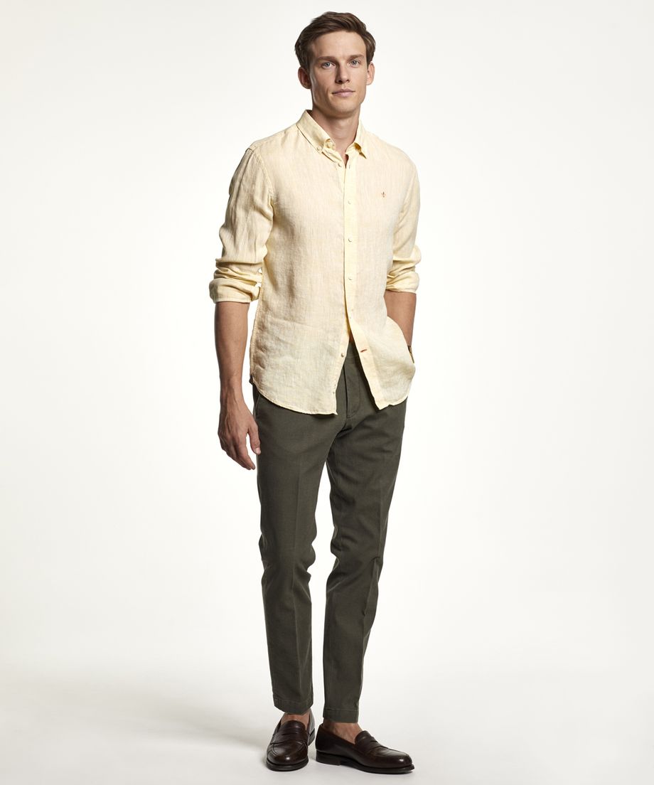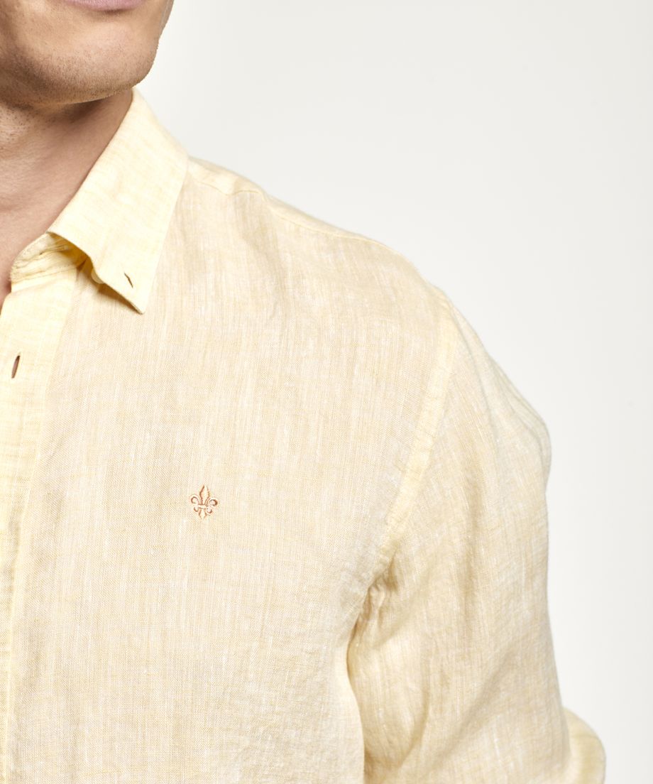 Popular linen shirt with button down collar and long sleeve. The shirt as single cuff slightly rounded with two buttons. This is the perfect spring and summer shirt and comes in a wide colour range.Regular fitEmbroidered lily at left chest100% Linen. Machine wash 30 degrees