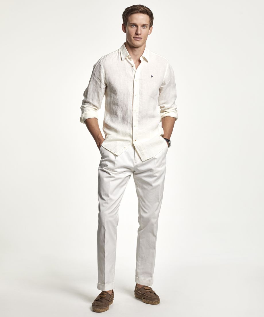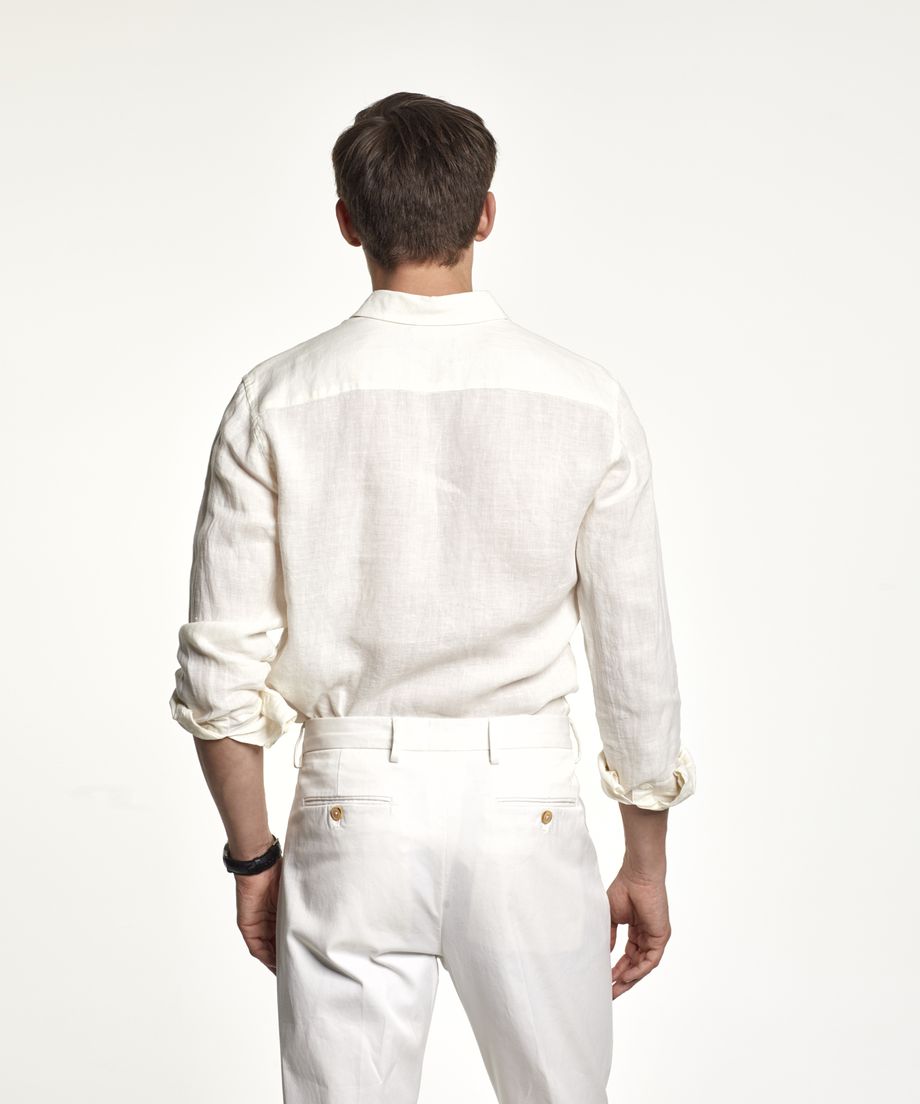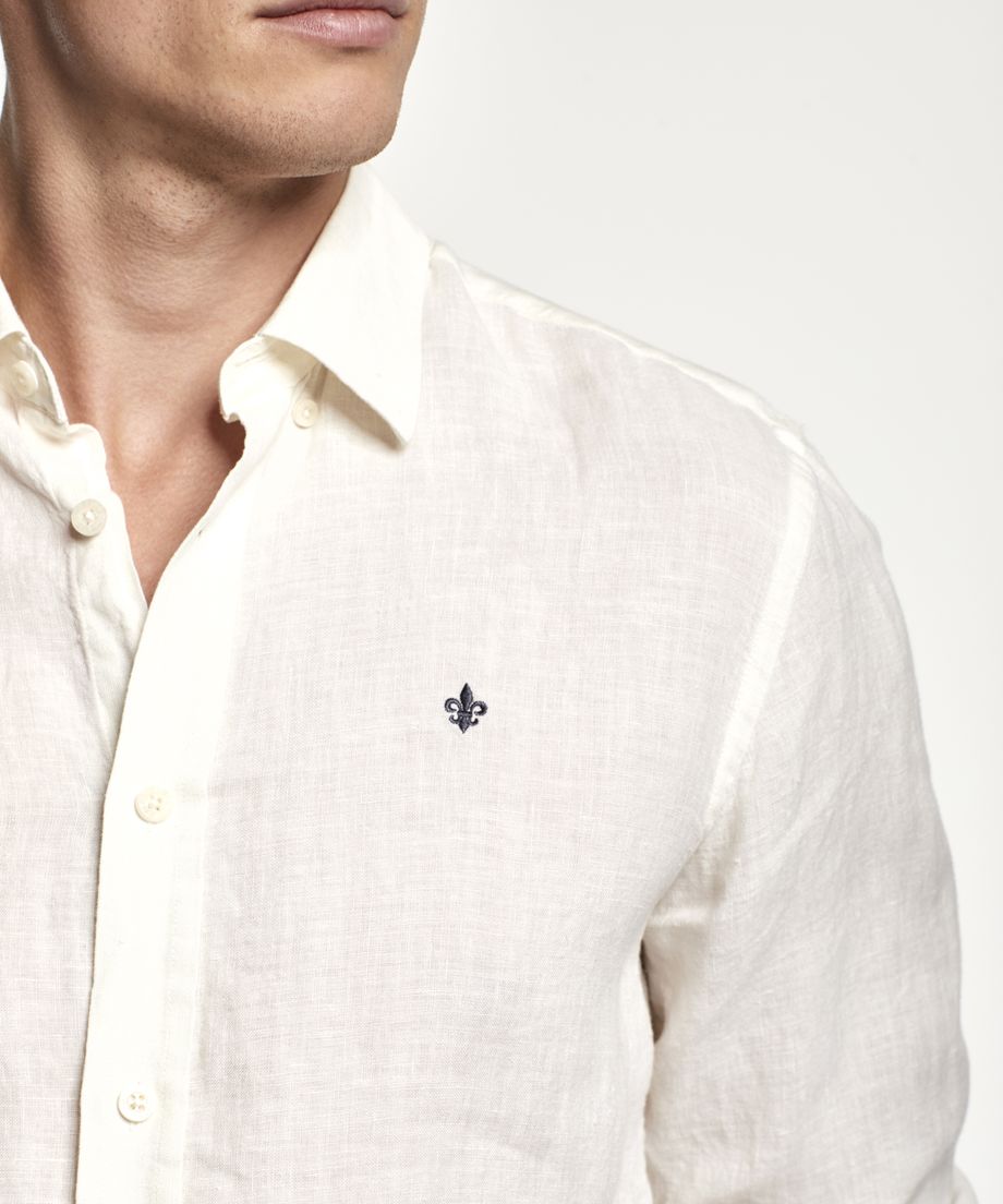 Popular linen shirt with button down collar and long sleeve. The shirt as single cuff slightly rounded with two buttons. This is the perfect spring and summer shirt and comes in a wide colour range.Regular fitEmbroidered lily at left chest100% Linen. Machine wash 30 degrees