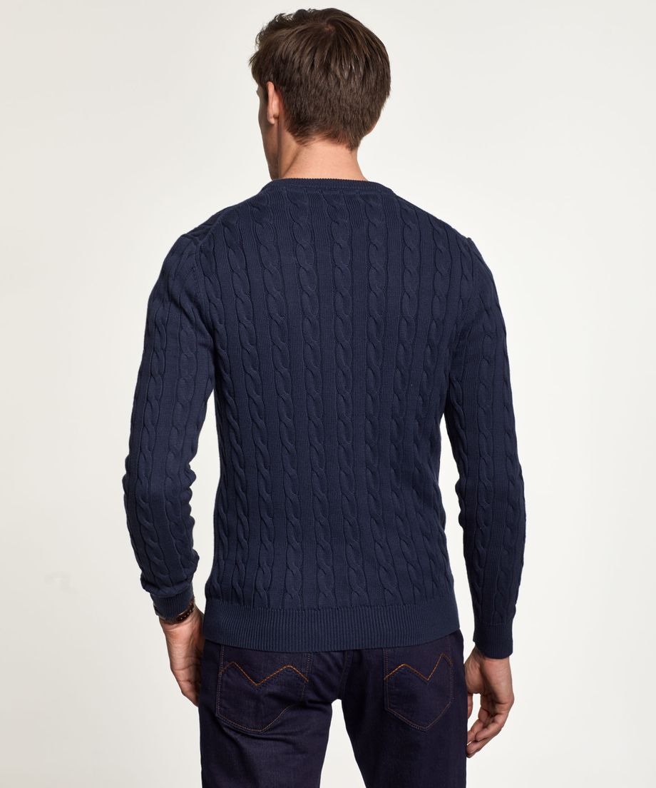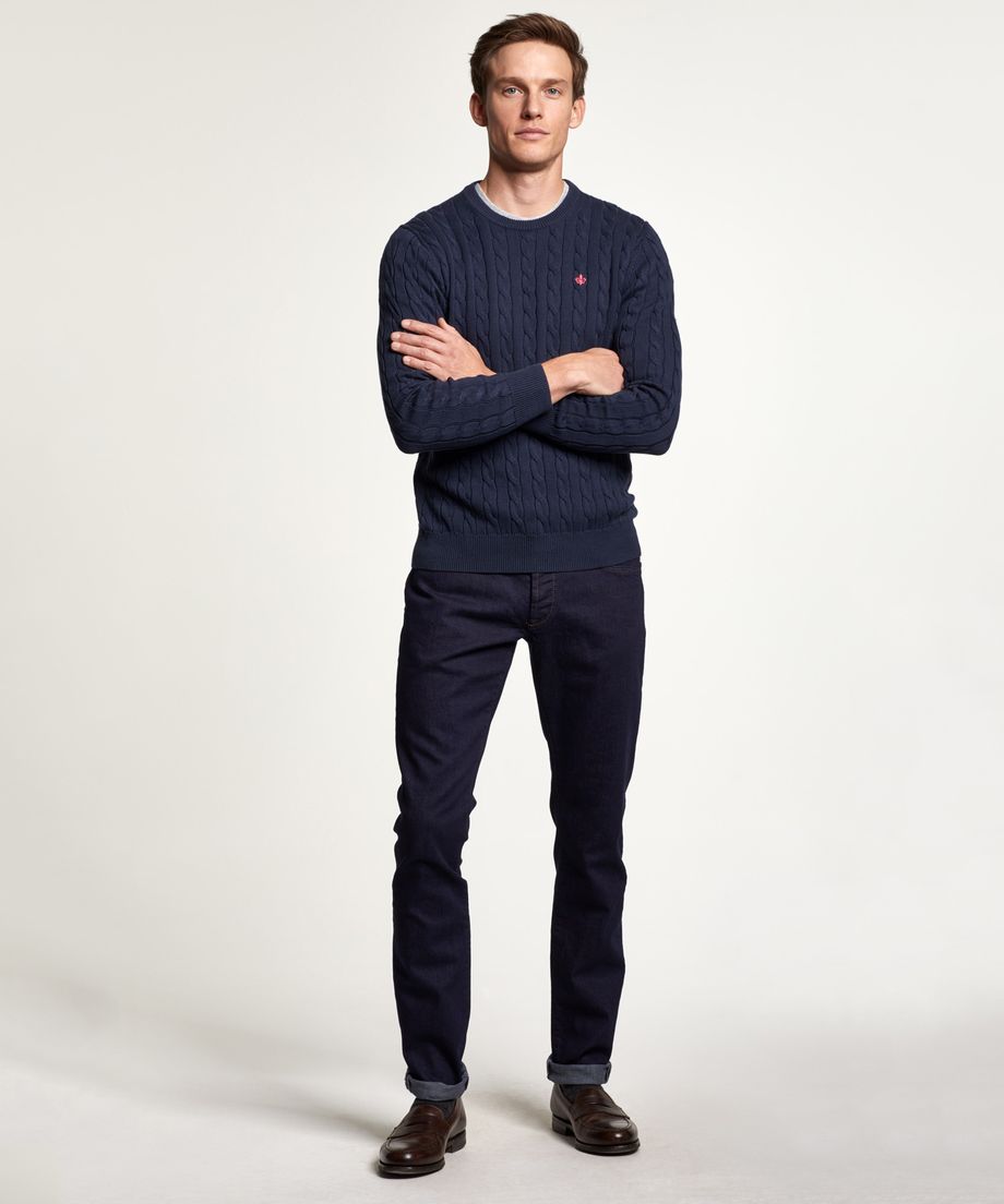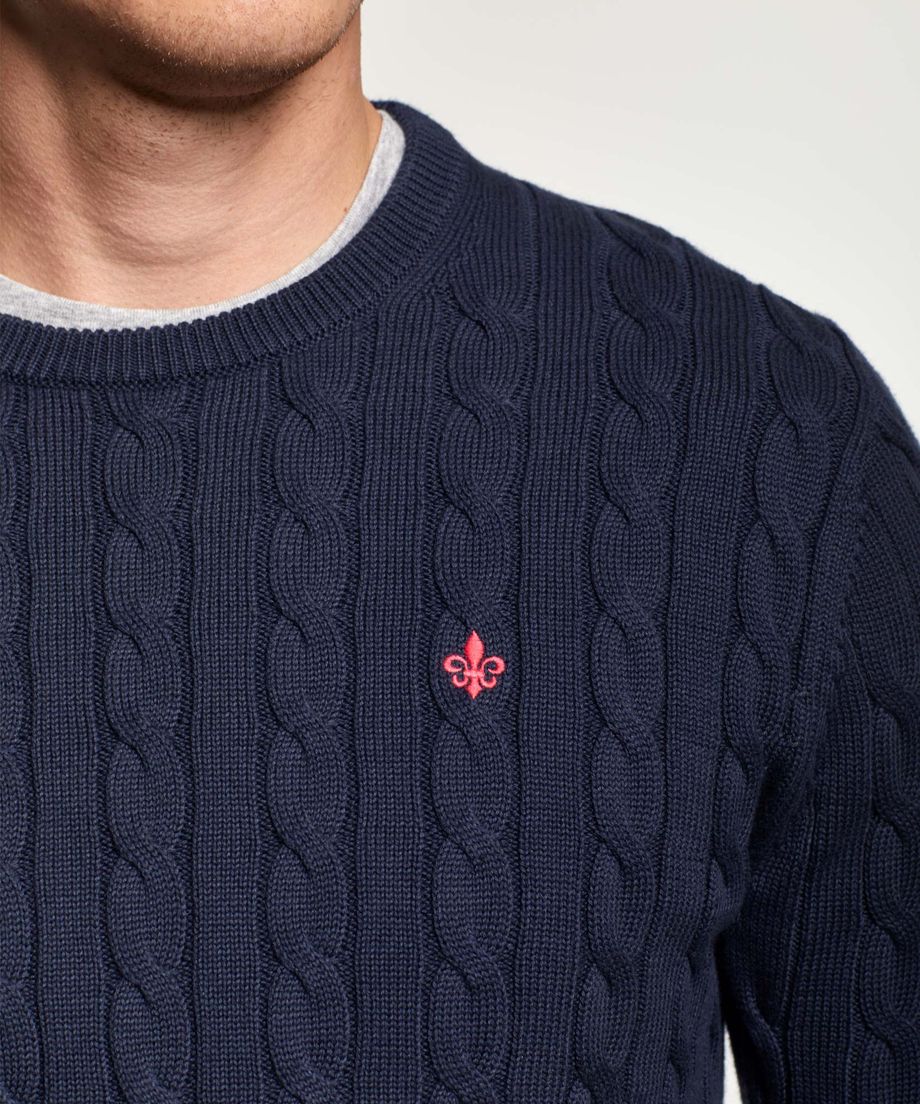 Crew necklineRibbed cuffs and hemCable knitEmbroidered lily on the chest100% Merino WoolHand washThe model is 184 cm and wears size M.