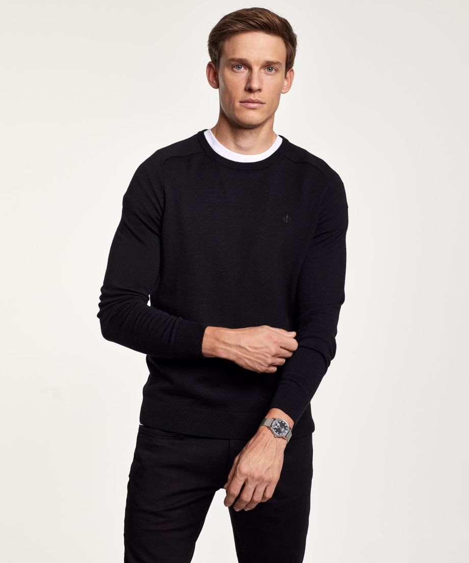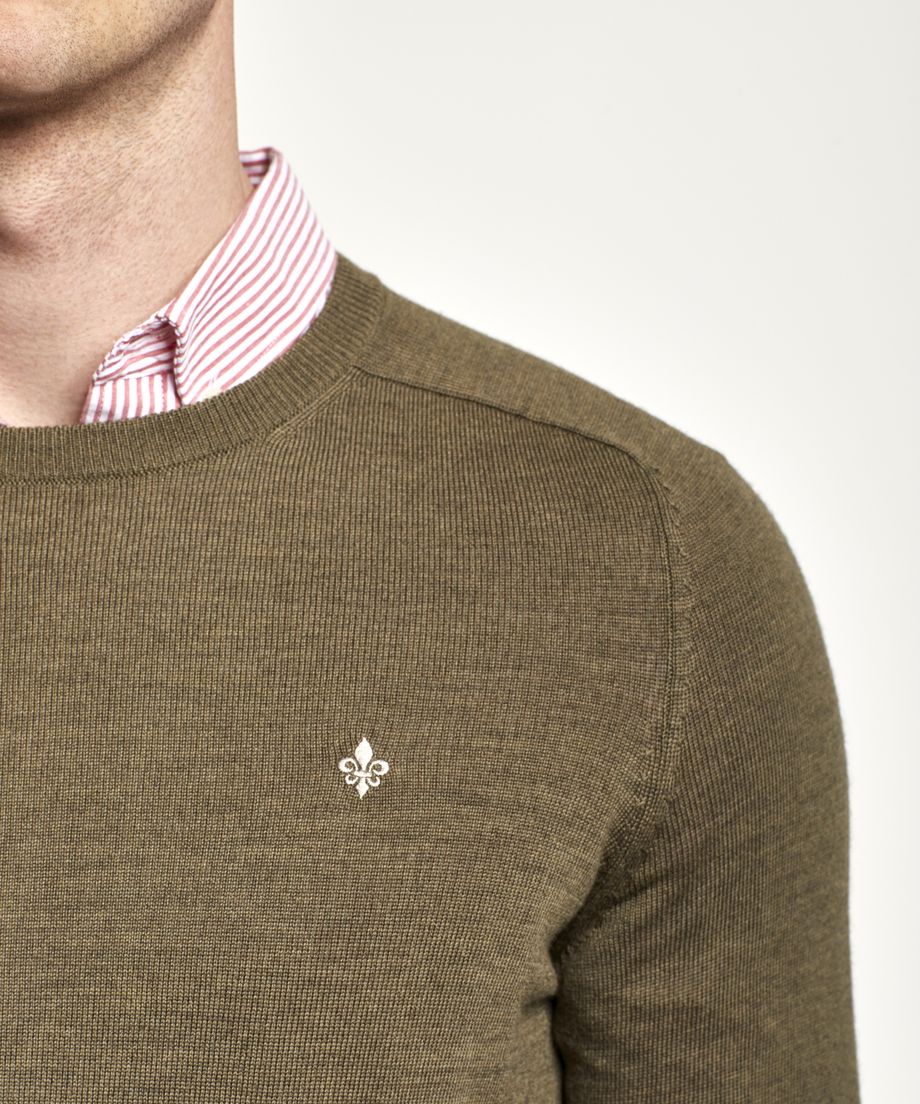 Knitted oneck made of our popular merino wool quality from Biella Südwolle. The sweater has ribs at cuff and bottom hem. Normal fit. Embroidered lily at left chest100% Merino WoolHand wash